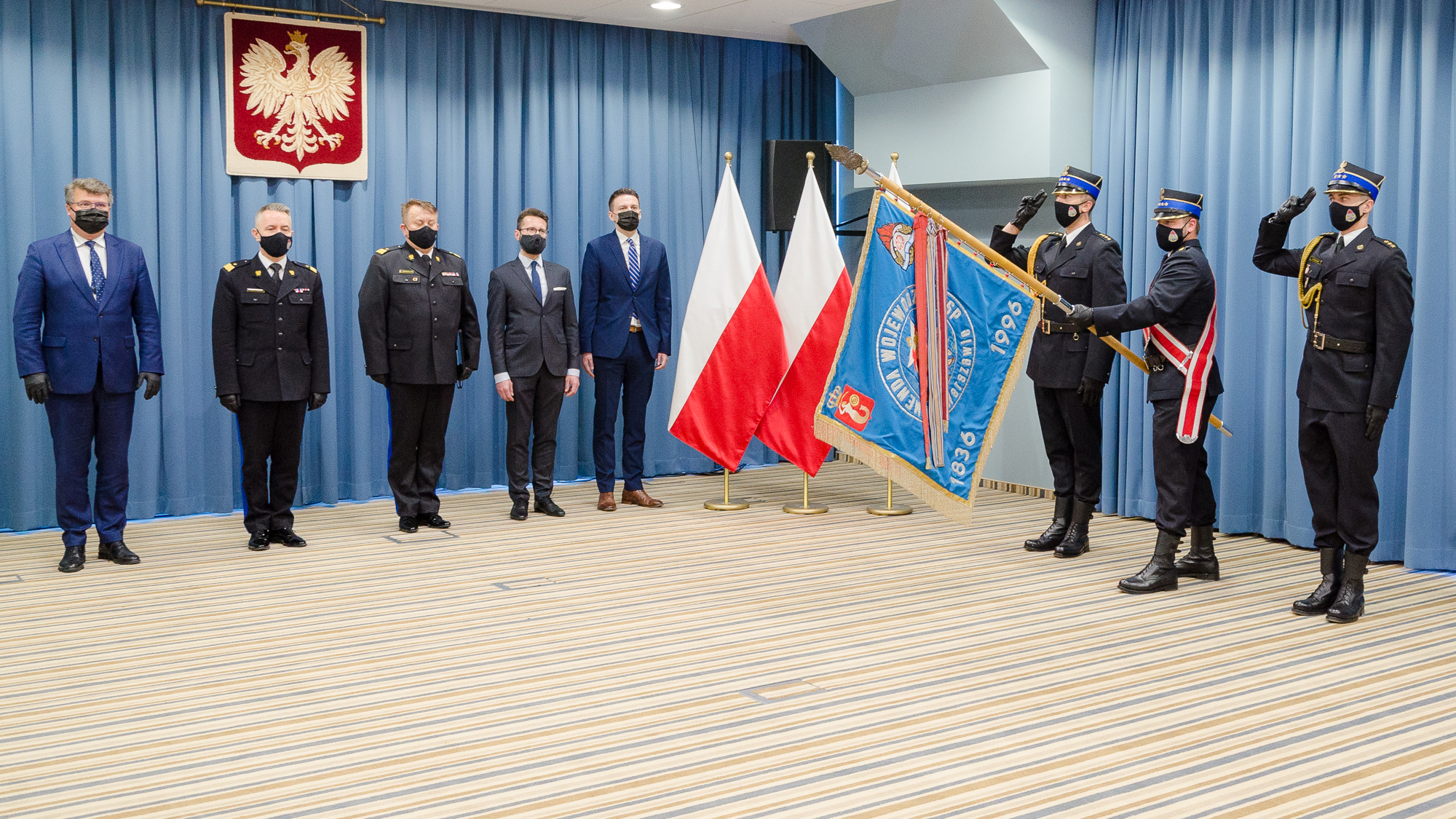 Uroczystość rozpoczęła się złożeniem meldunku panu Maciejowi Wąsikowi wiceministrowi spraw wewnętrznych i administracji. Następnie wprowadzono poczet sztandarowy Komendy Wojewódzkiej PSP w Warszawie oraz odegrano hymn narodowy.