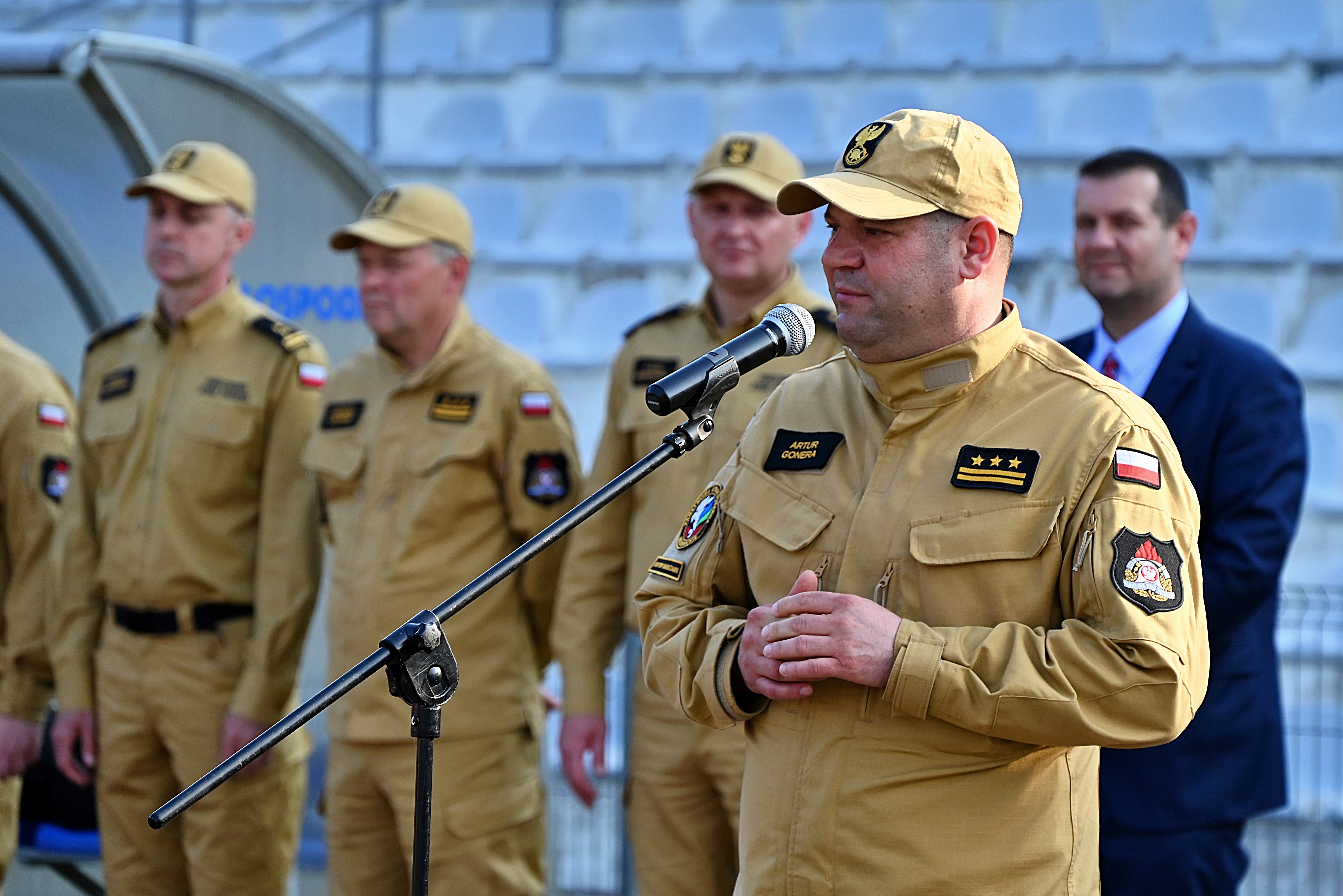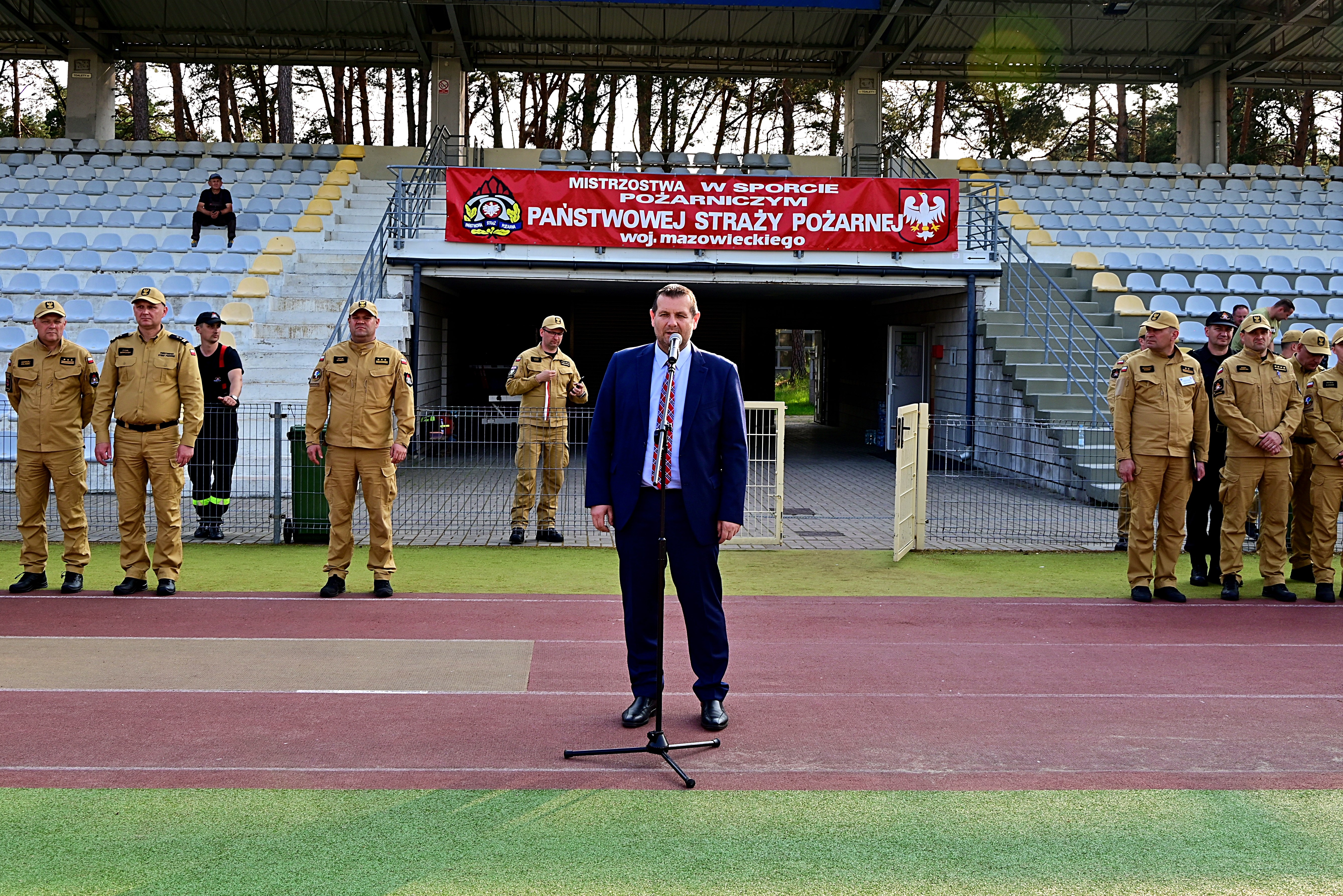 Podczas ceremonii otwarcia mistrzostw głos zabrał Komendant Powiatowy PSP w Kozienicach bryg. Kamil Bieńkowski, który życzył uczestnikom sportowej rywalizacji fair-play.