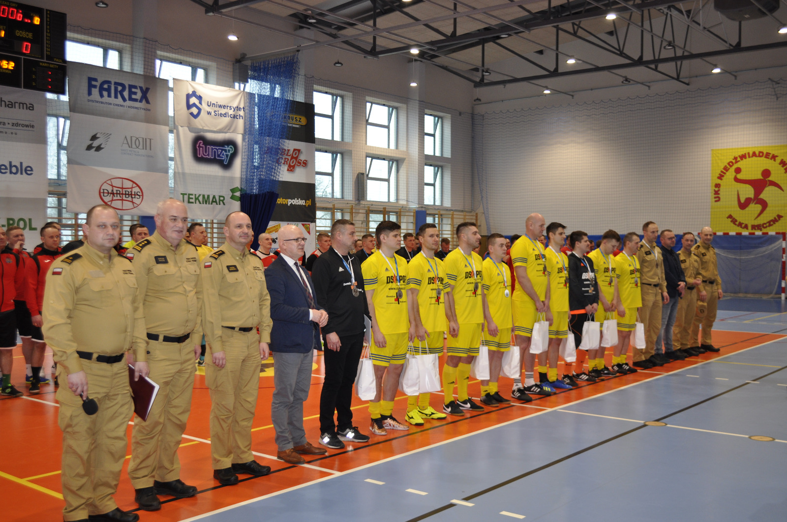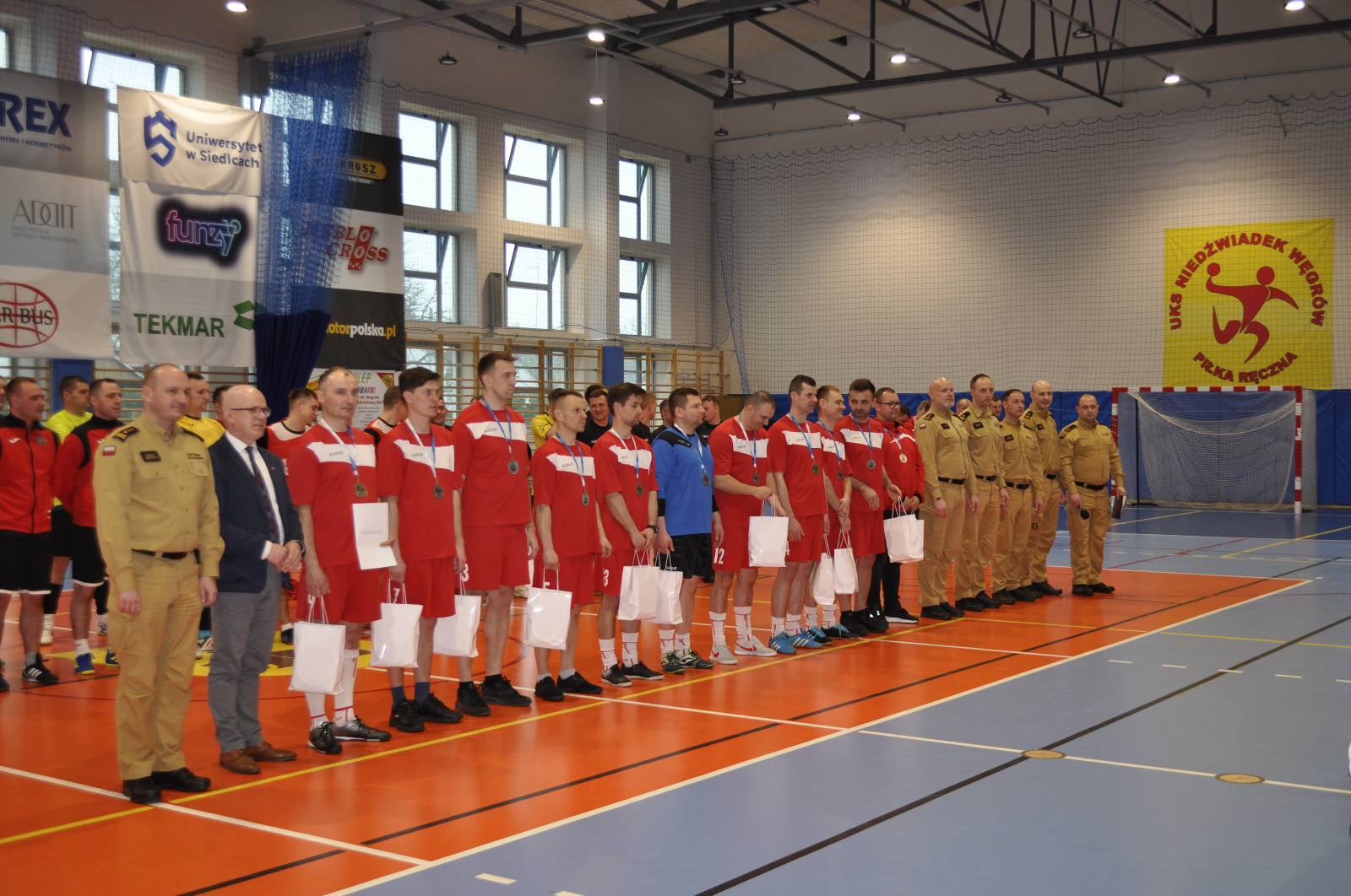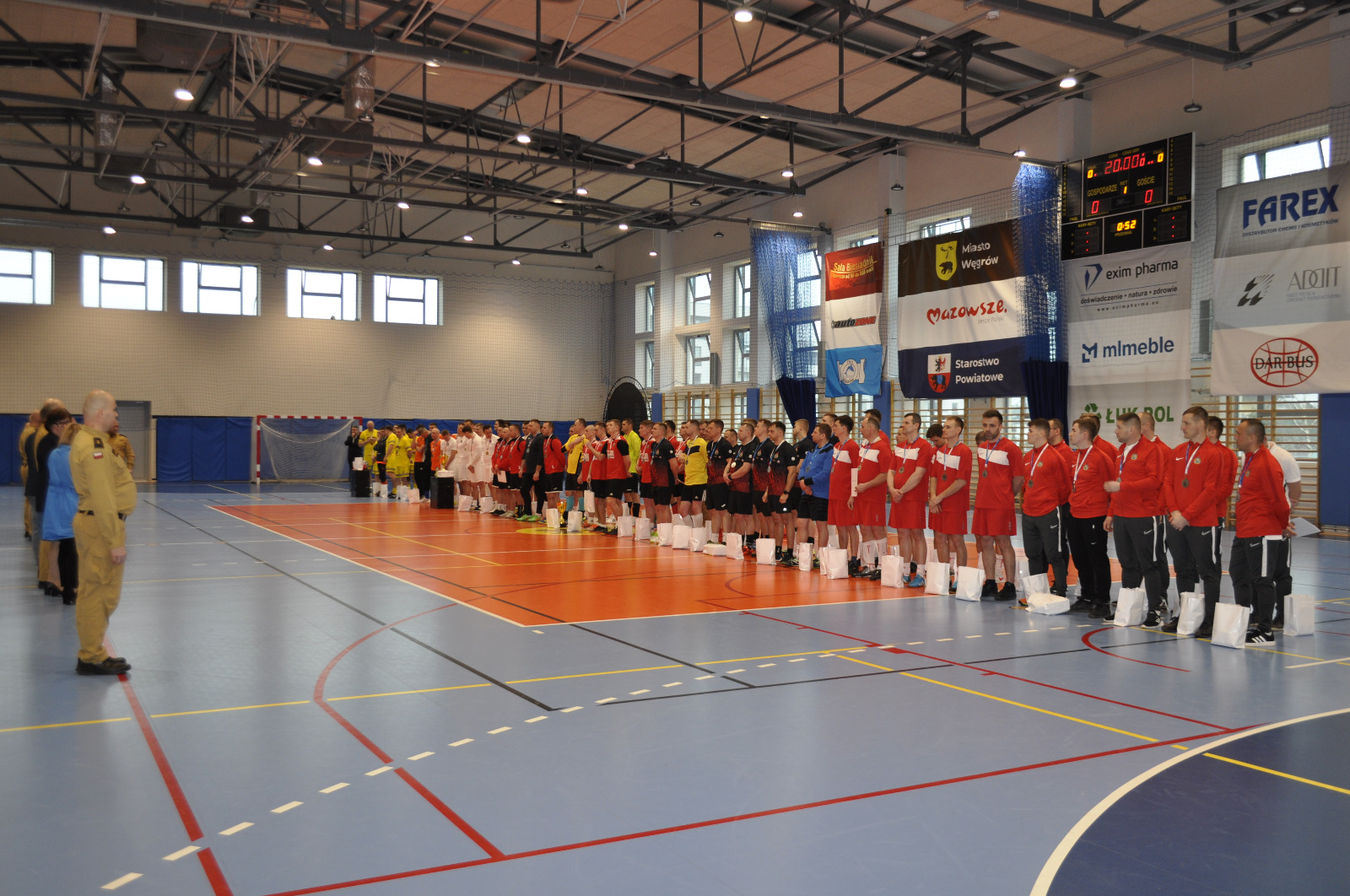 Wręczenia nagród indywidualnych oraz dla drużyn uczestniczących w finale XXI Mistrzostw Województwa Mazowieckiego Strażaków w Halowej Piłce Nożnej dokonali: