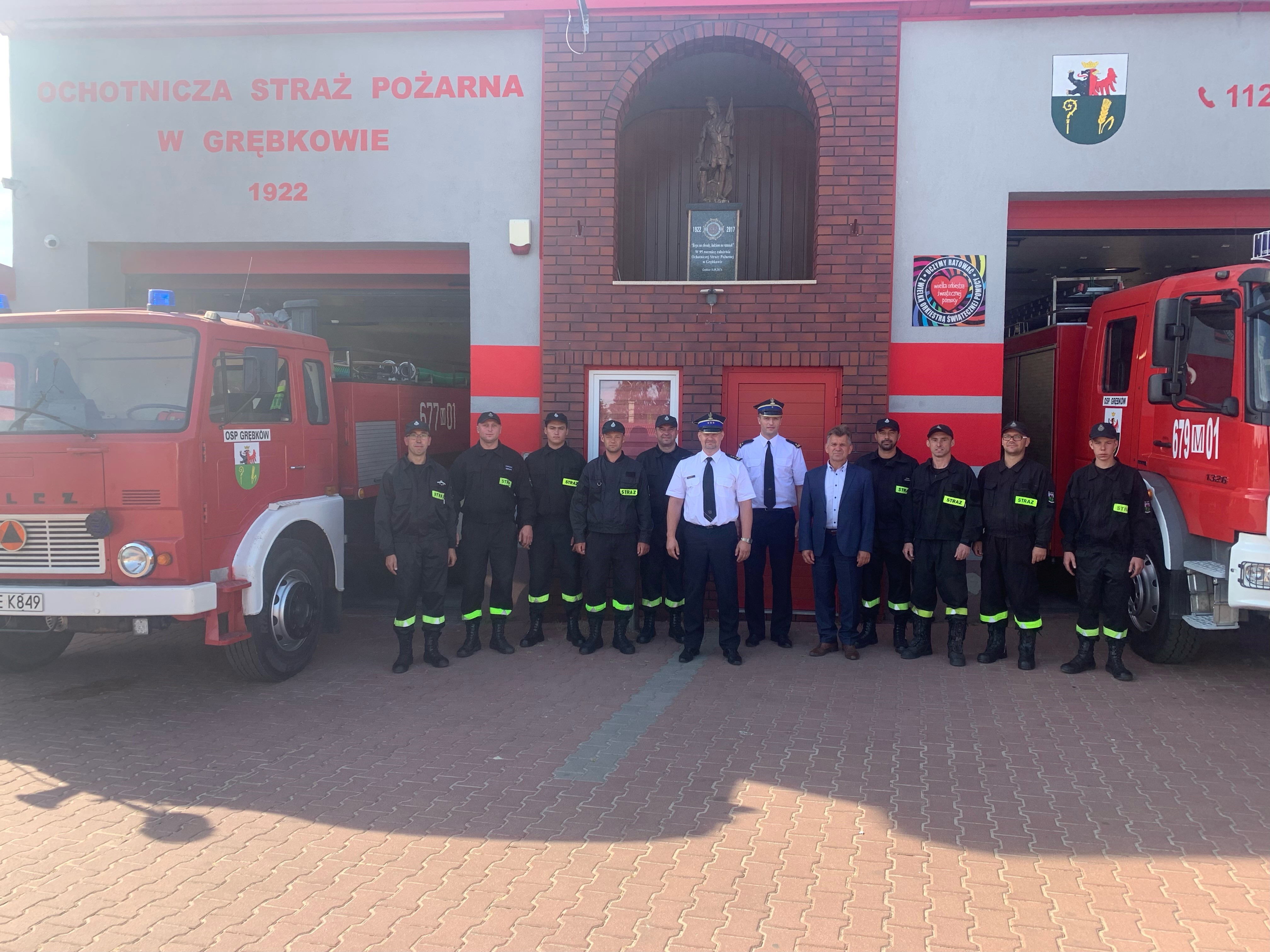 Ostatnią odwiedzoną jednostką była Ochotnicza Straż Pożarna w Grębkowie, która jest włączona do Krajowego Systemu Ratowniczo-Gaśniczego. Jednostka z tradycjami, która w tym roku obchodzi 100-lecie istnienia. Zastępca Mazowieckiego Komendanta Wojewódzkiego PSP st. bryg. Tomasz Cybul pogratulował zbliżających się obchodów setnej rocznicy powstania, a także doradził w aspektach organizacyjnych nadchodzącego wydarzenia. OSP w Grębkowie również w sposób istotny zaangażowała się we wsparcie strażaków z Ukrainy, ofiarując agregat prądotwórczy.