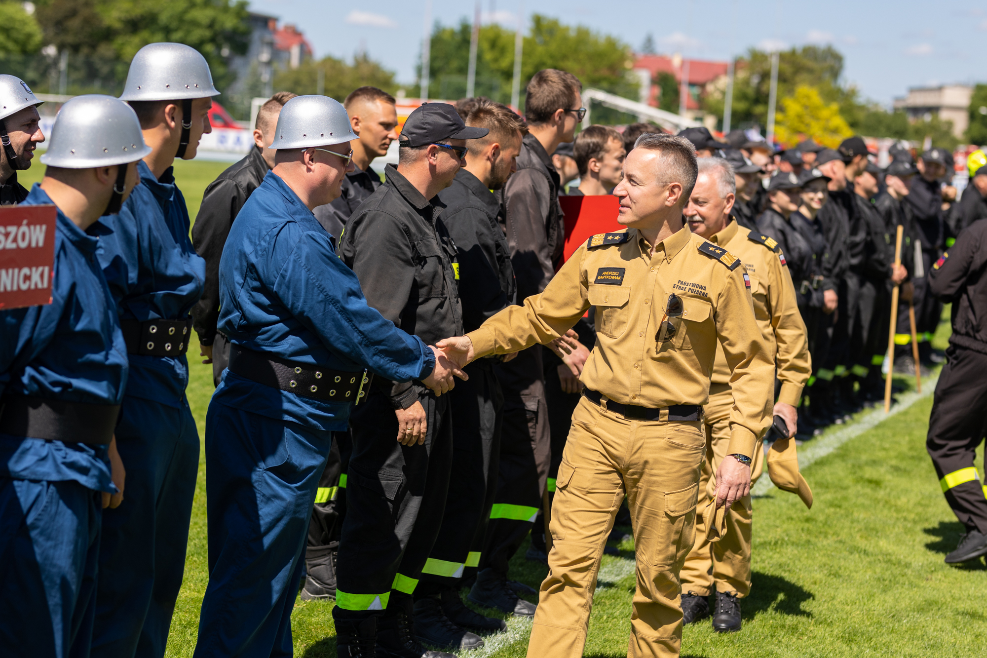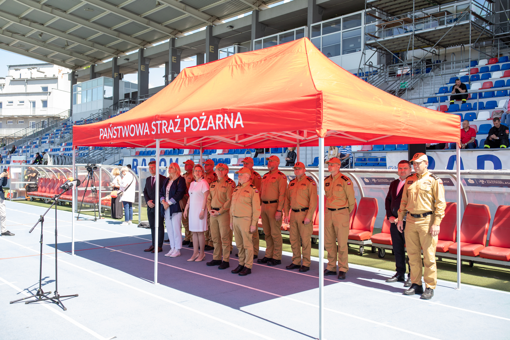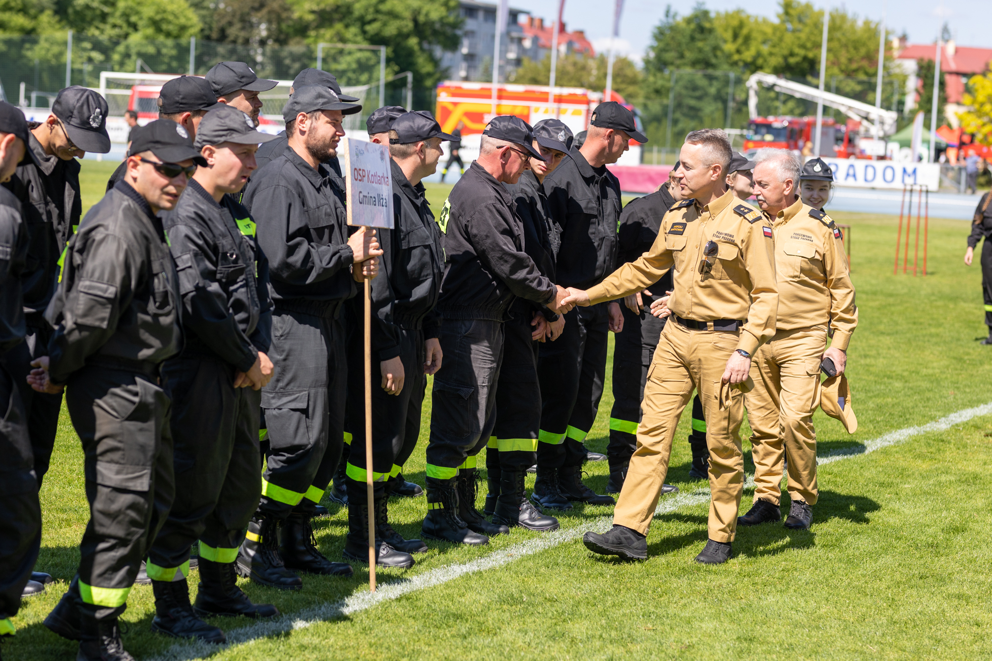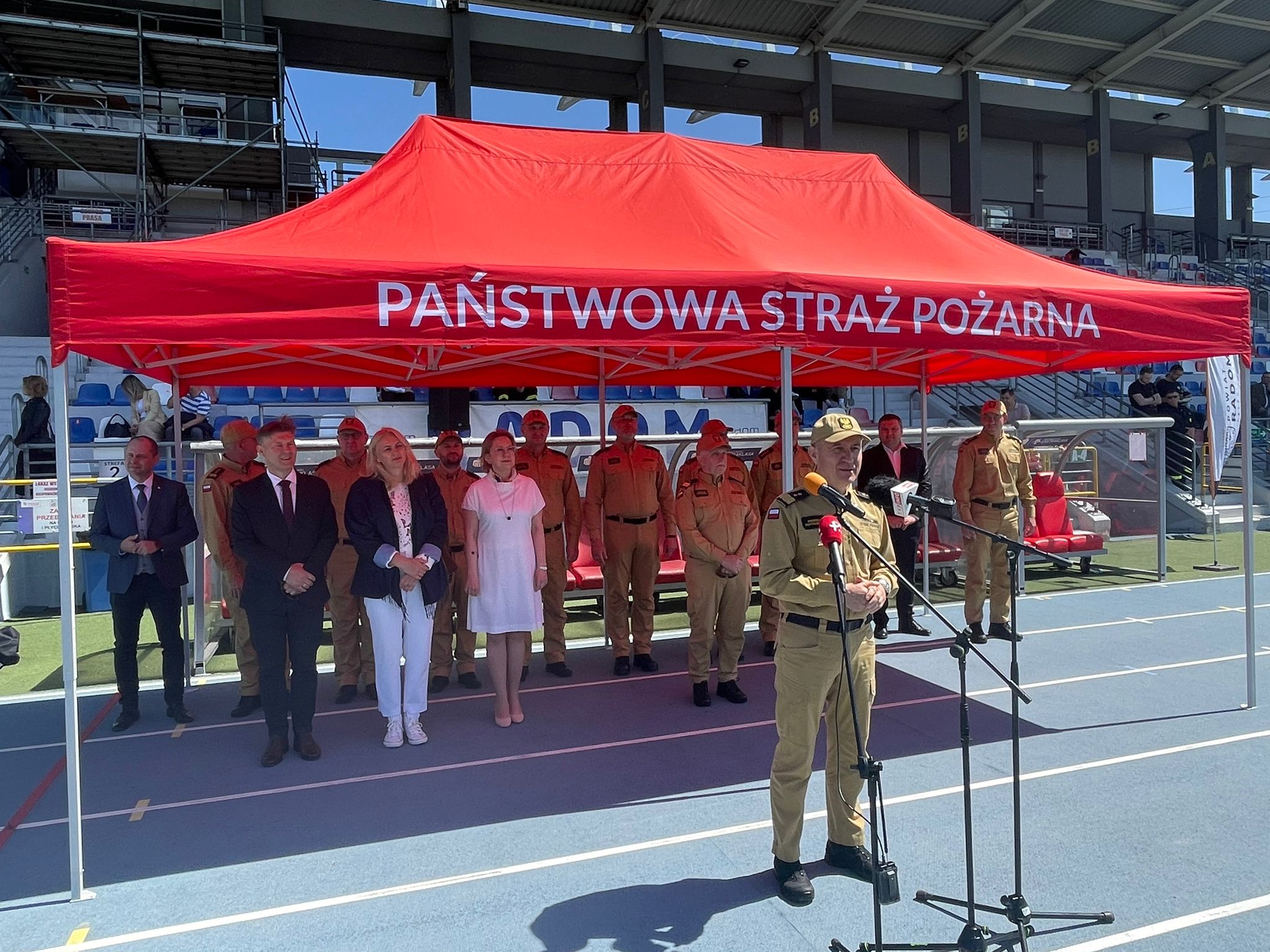 St. kpt. Adrian Becher, kierownik zawodów, złożył meldunek komendantowi głównemu Państwowej Straży Pożarnej gen. brygadierowi Andrzejowi Bartkowiakowi o gotowości drużyn do rozpoczęcia zawodów. Uroczystego otwarcia zawodów dokonała Pani Anna Moskwa, minister Klimatu i Środowiska.
