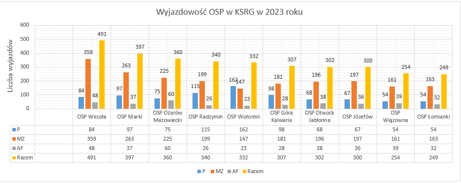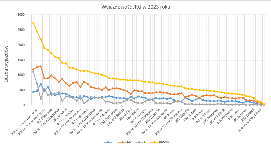 Zestawienie wyjazdowości do zdarzeń mazowieckich jednostek PSP i OSP w 2023 roku