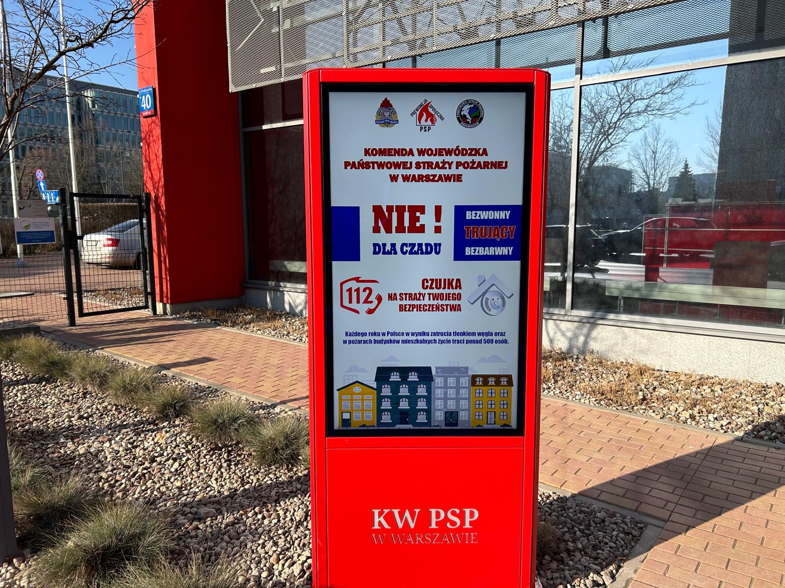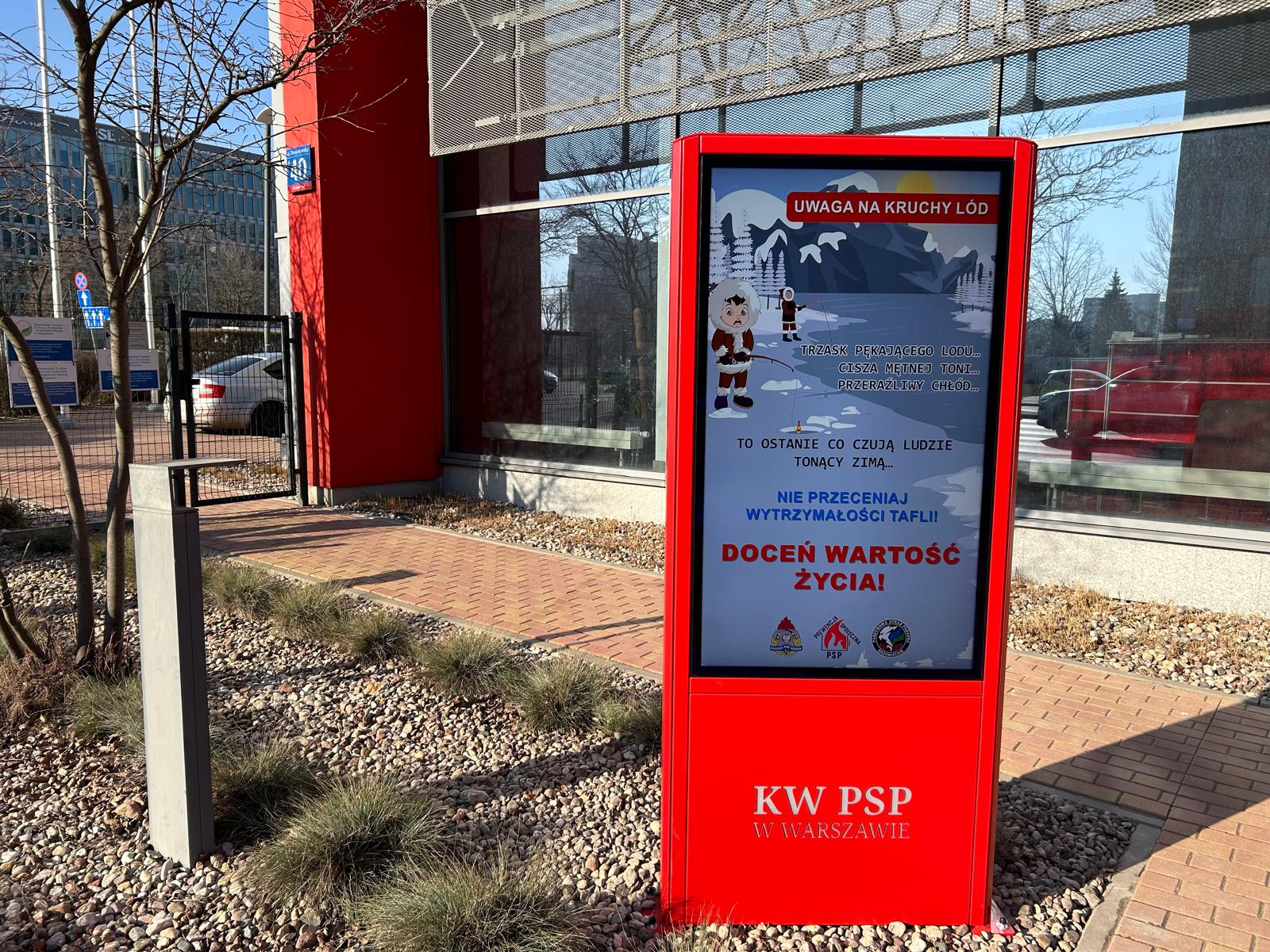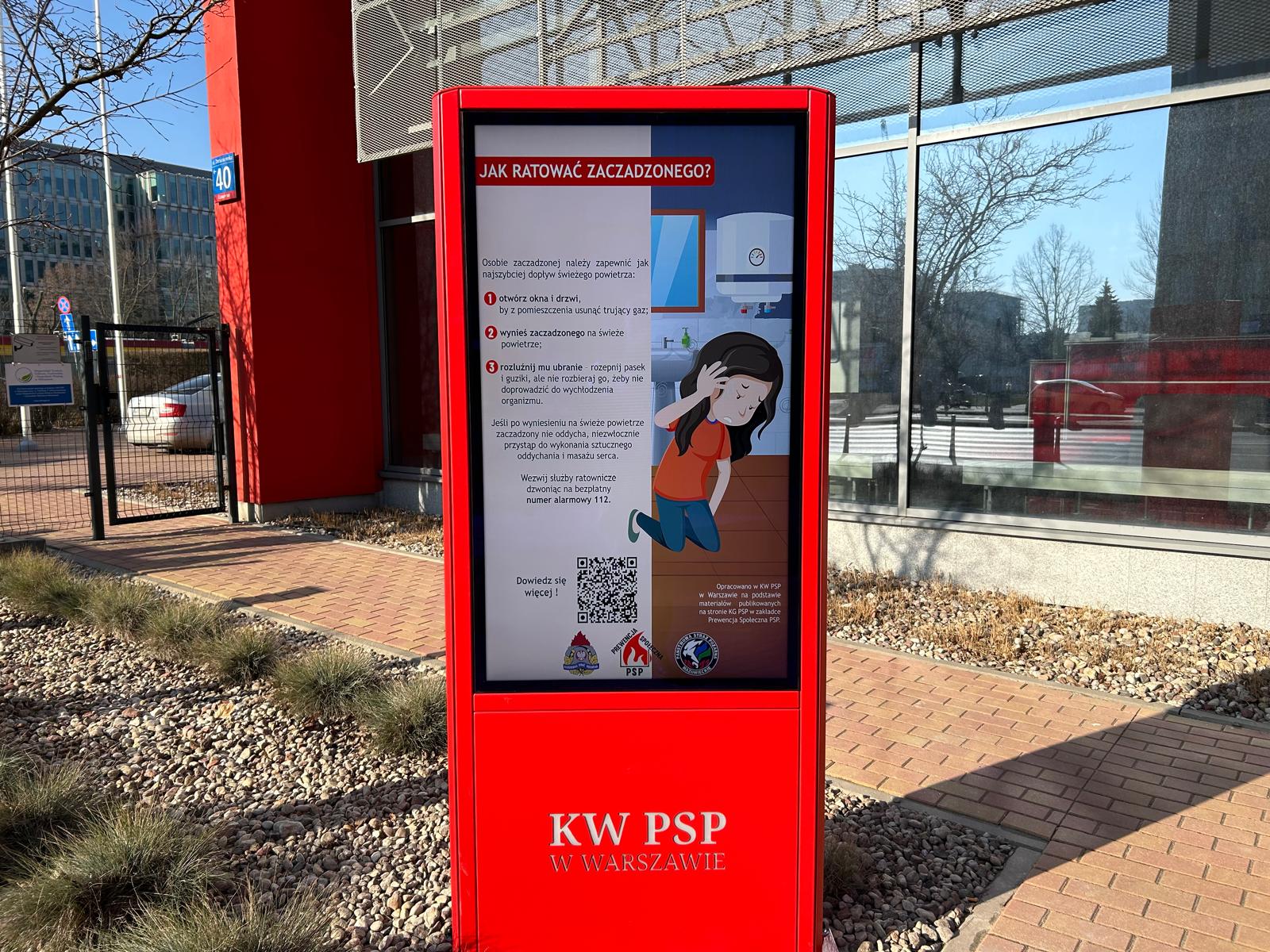 Przed wejściem do siedziby Komedy Wojewódzkiej Państwowej Straży Pożarnej w Warszawie uruchomiliśmy zewnętrzny ekran informacyjny, na którym będziemy prezentować różne grafiki z zakresu prewencji społecznej PSP, materiały edukacyjne i inne wiadomości. To nowy interaktywny spośób na przekazywanie ważnych dla naszego bezpieczeństwa informacji, który z pewnością przyczyni się do jego poprawy.