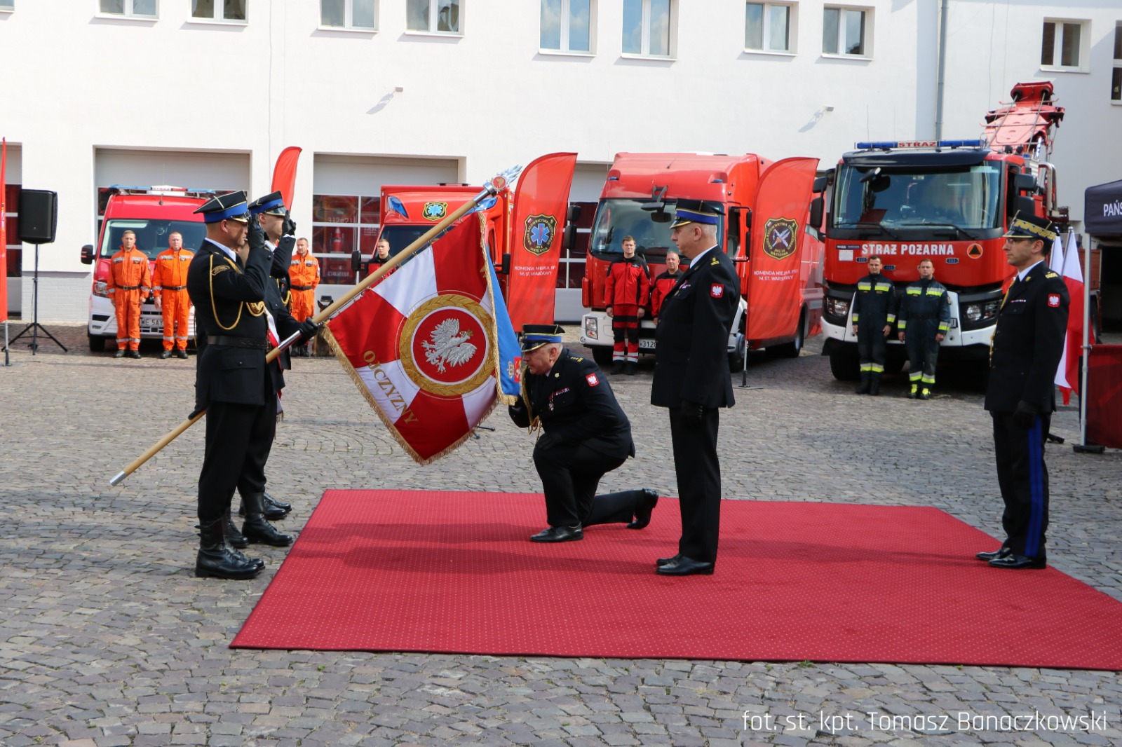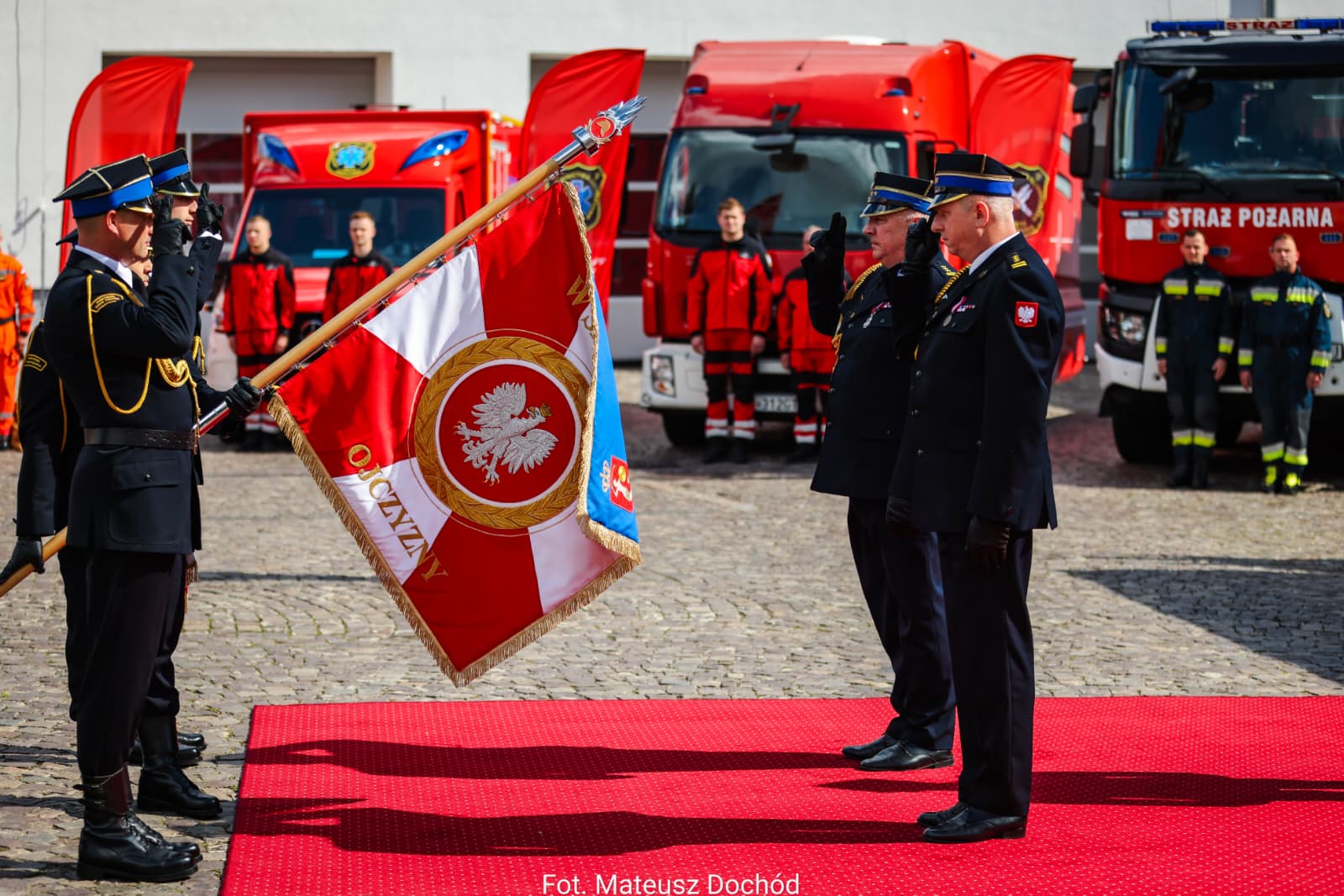 Uroczystość rozpoczęła się od złożenia meldunku przez dowódcę uroczystości Komendantowi Głównemu PSP nadbryg. Wojciechowi Kruczkowi.