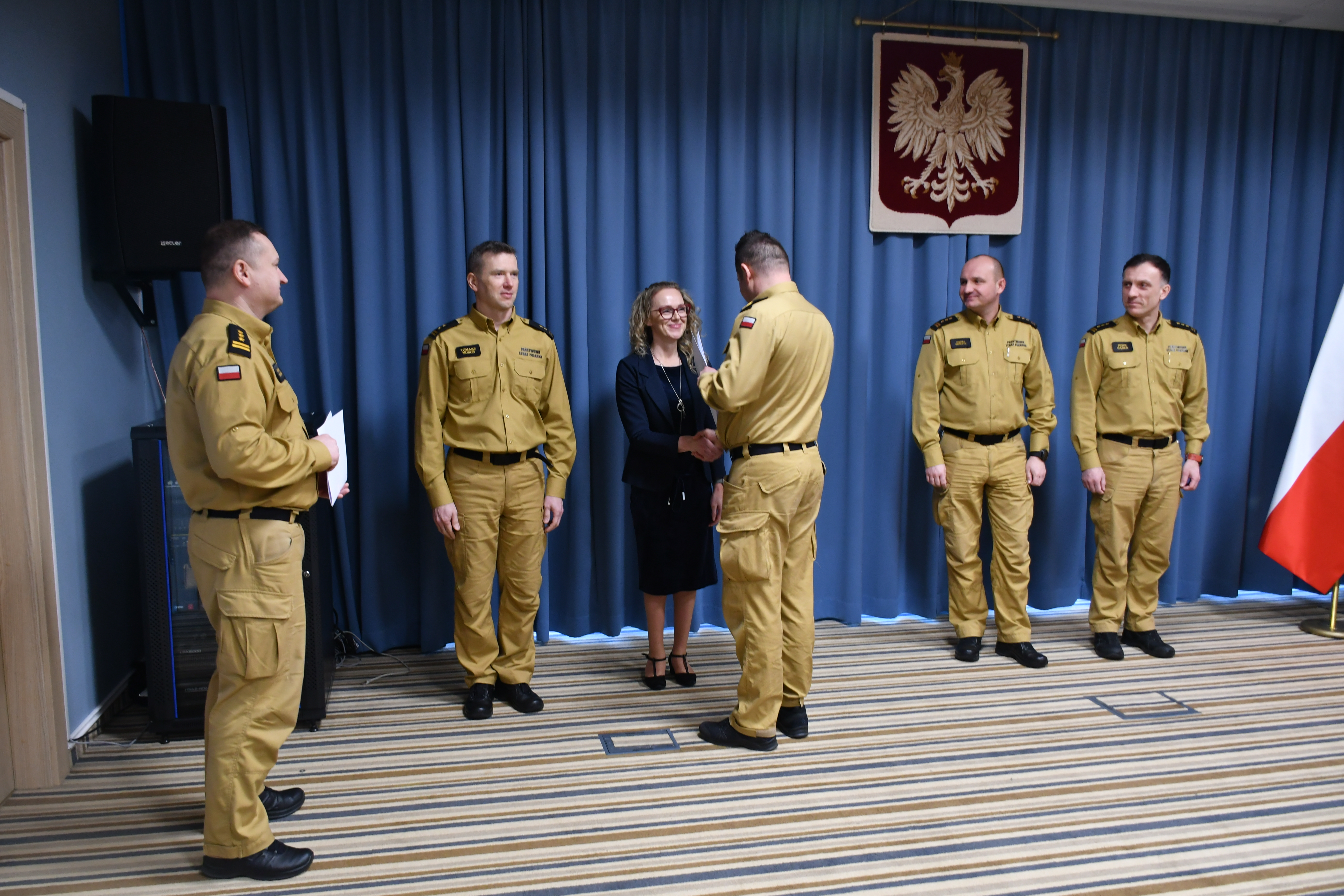 Decyzje personalne zostały osobiście wręczone przez st. bryg. Artura Gonerę podczas uroczystej zbiórki w Komendzie Wojewódzkiej PSP w Warszawie w dniu 1 marca 2024 roku.