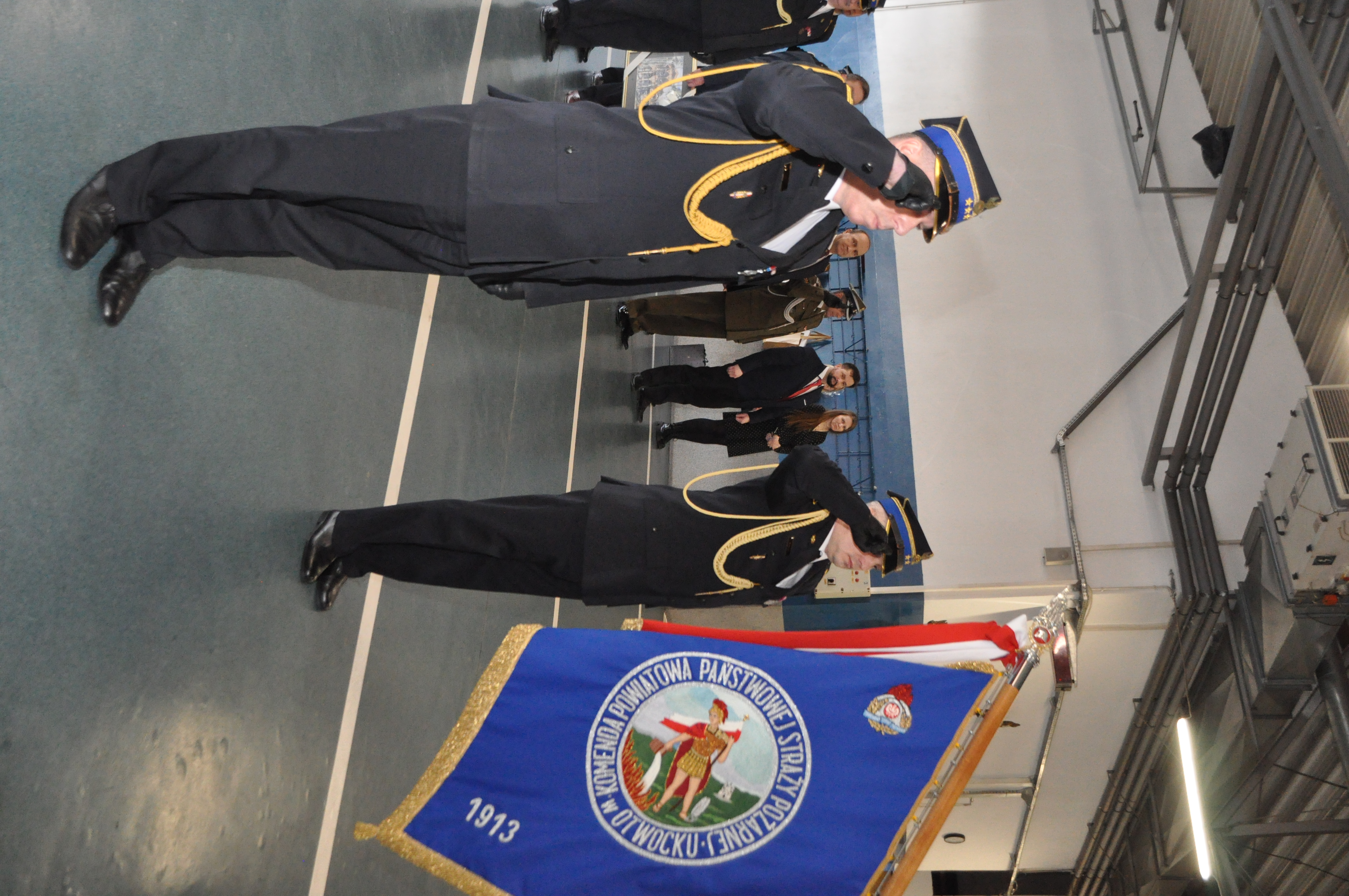 Uroczystą zbiórkę rozpoczął dowódca uroczystości mł. bryg. Radosław Podgórski, który złożył meldunek Zastępcy Mazowieckiego Komendanta Wojewódzkiego PSP st. bryg. Arturowi Gonerze.