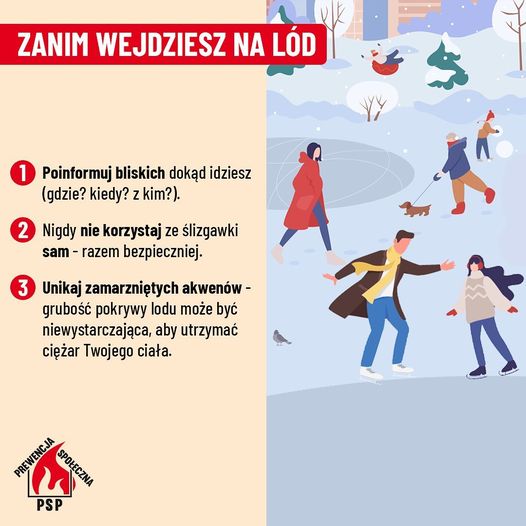 - zagrożenia związane z korzystaniem z tzw. „dzikich lodowisk” na zamarzniętych akwenach,