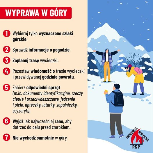 - zagrożenia związane z zabawami i aktywnością na świeżym powietrzu (ferie zimowe spędzane w górach, na stoku narciarskim, zjeżdżanie na sankach, organizowanie kuligów),