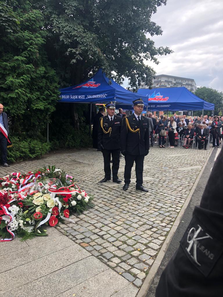 Wzorem lat ubiegłych, wśród licznych delegacji, kwiaty złożyli także strażacy Komendy Wojewódzkiej Państwowej Straży Pożarnej we Wrocławiu.