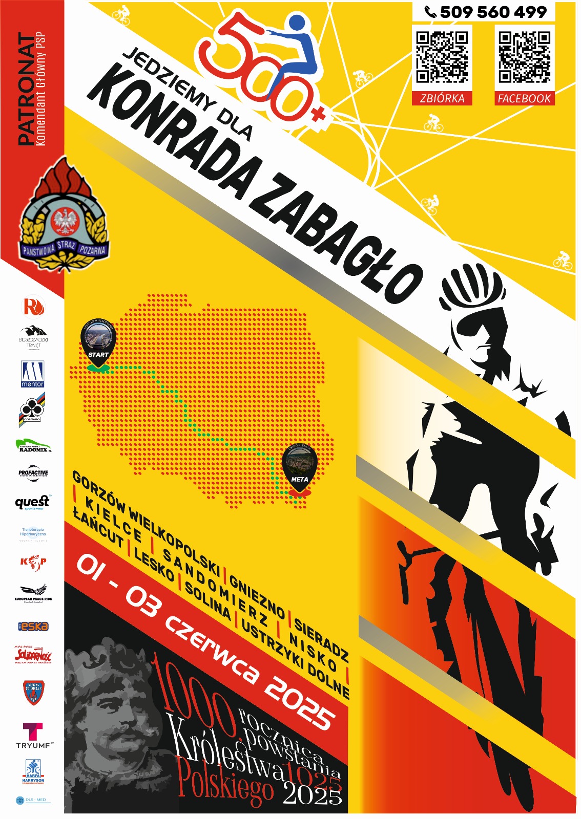 Komenda Wojewódzka PSP we Wrocławiu informuje, że w dniach 1–3 czerwca 2025 roku odbędzie się 9. edycja ogólnopolskiej inicjatywy rowerowej "500 kilometrów plus".