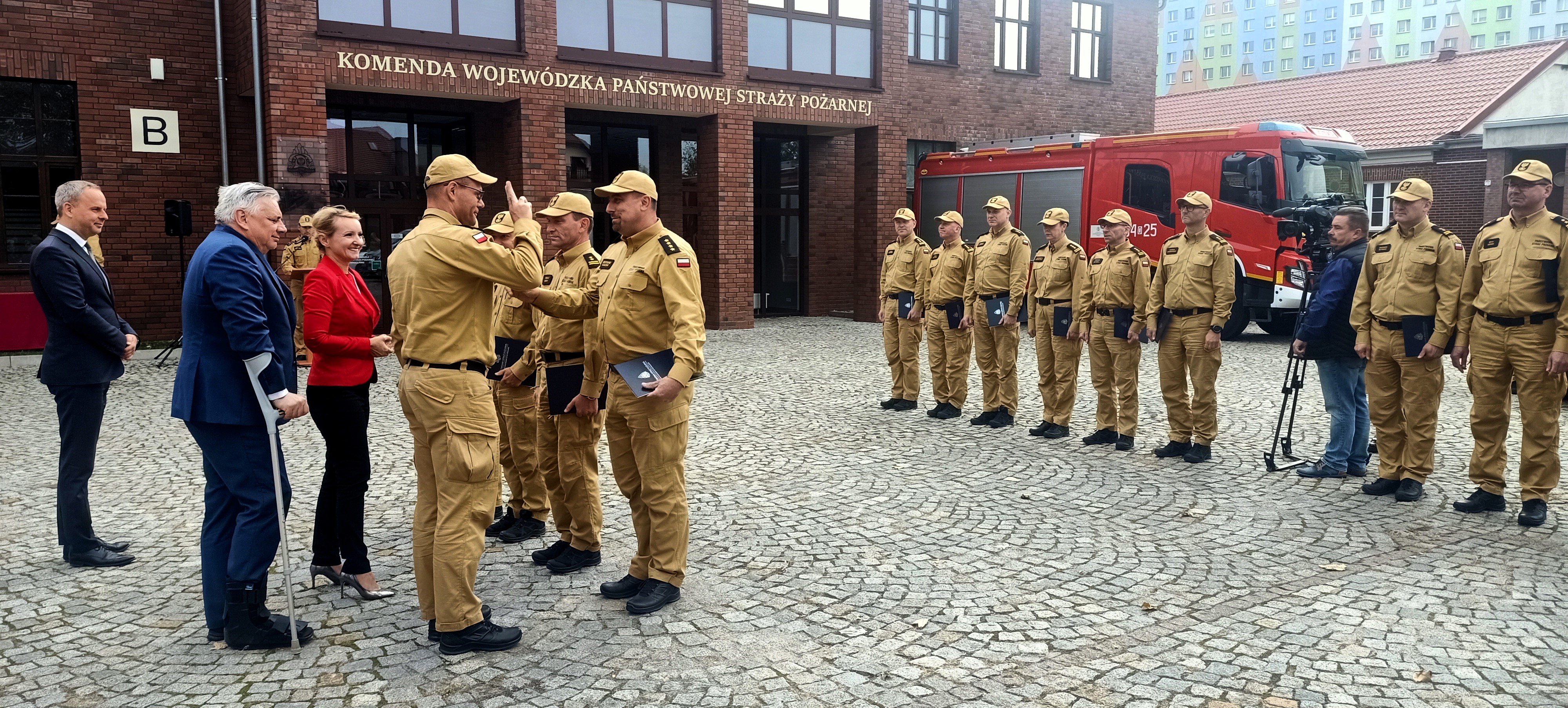 W uroczystości uczestniczyli: Paweł Hreniak, Poseł na Sejm RP, zastępca przewodniczącego Komisji Administracji i Spraw Wewnętrznych, Agnieszka Soin Poseł na Sejm RP, członek Parlamentarnego Zespołu Strażaków, Bogusław Szpytma, Wicewojewoda Dolnośląski, bryg. Michał Pięta zastępca komendanta wojewódzkiego PSP, Andrzej Góralski z Wydziału Bezpieczeństwa i Zarządzania Kryzysowego Dolnośląskiego Urzędu Wojewódzkiego, komendanci powiatowi i miejscy PSP z komend, do których trafiły agregaty.