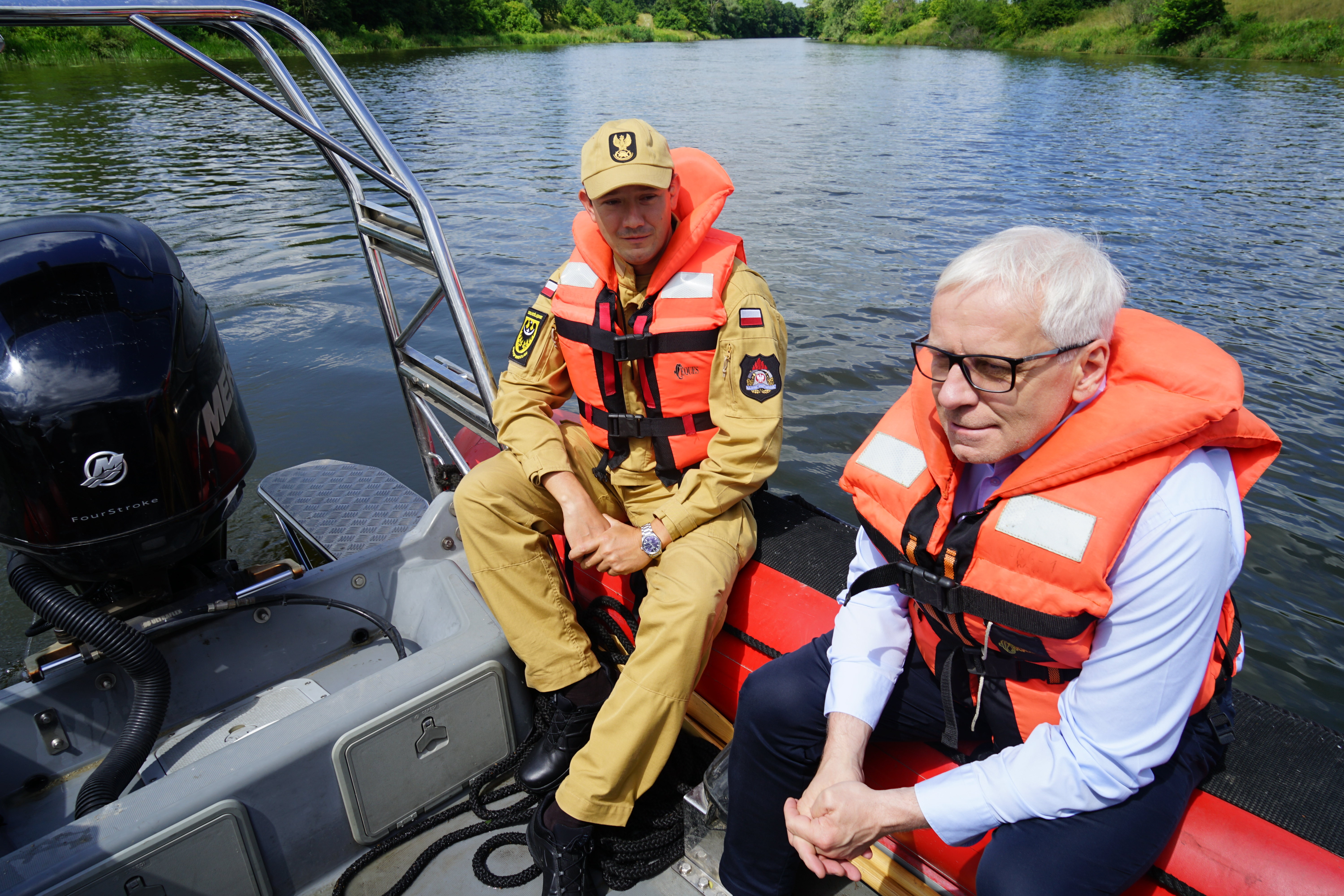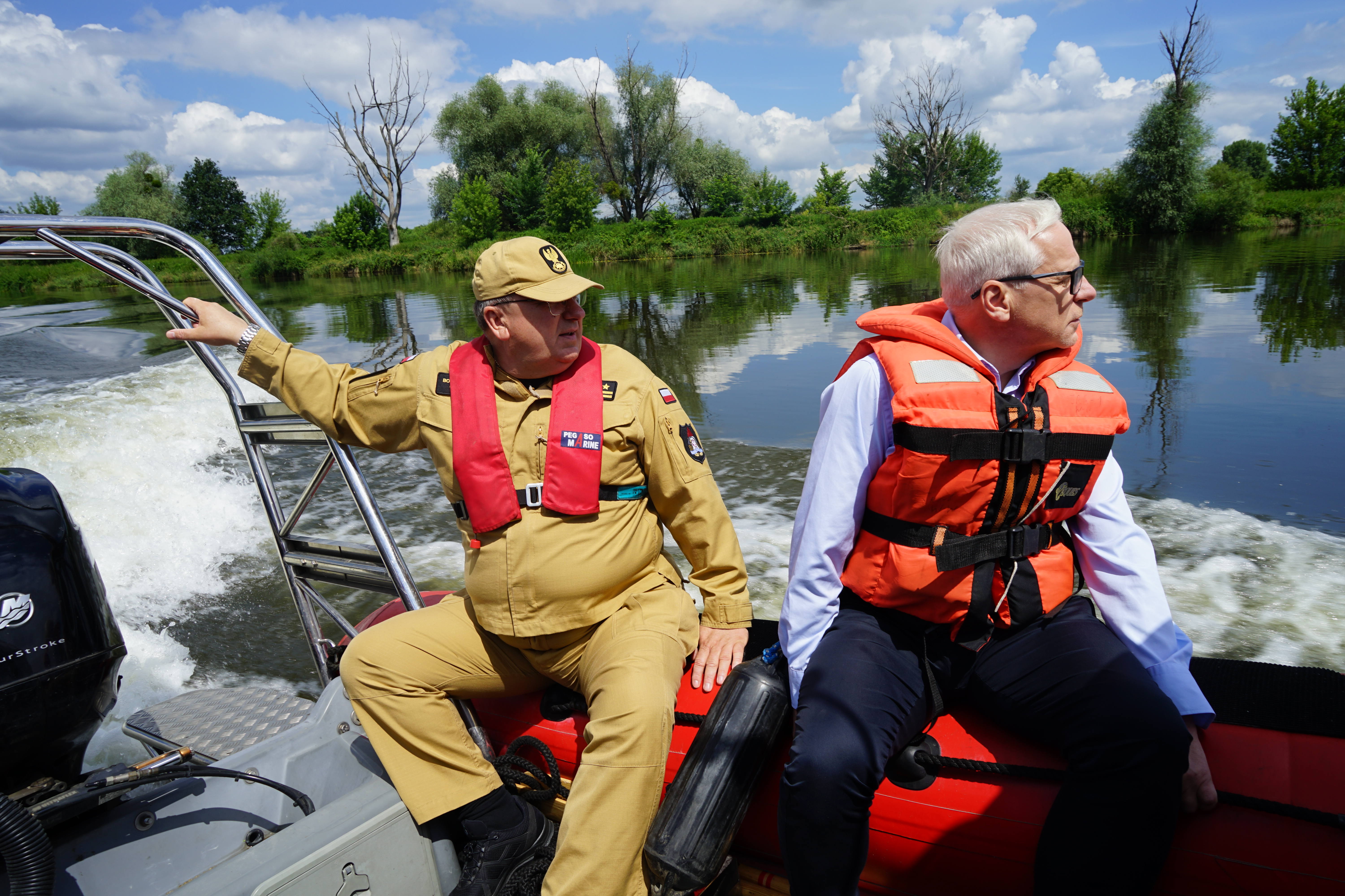 W ostatnim spotkaniu Wojewódzkiego Zespołu Zarządzania Kryzysowego, poświęconym sytuacji na rzece Odrze i starorzeczach, zastępca dolnośląskiego komendanta wojewódzkiego PSP we Wrocławiu st. bryg. Bogusław Brud wraz z zastępcą naczelnika wydziału operacyjnego mł. bryg. Januszem Wasylko uczestniczyli najpierw w odprawie, a następnie wyruszyli wraz z Wojewodą Dolnośląskim w patrol terenowy po rzece. Naszym celem było sprawdzenie zabezpieczeń siatki oraz zapory elastycznej na zamknięciu akwenu w zbiorniku Czernica po niedawnych opadach deszczu.
