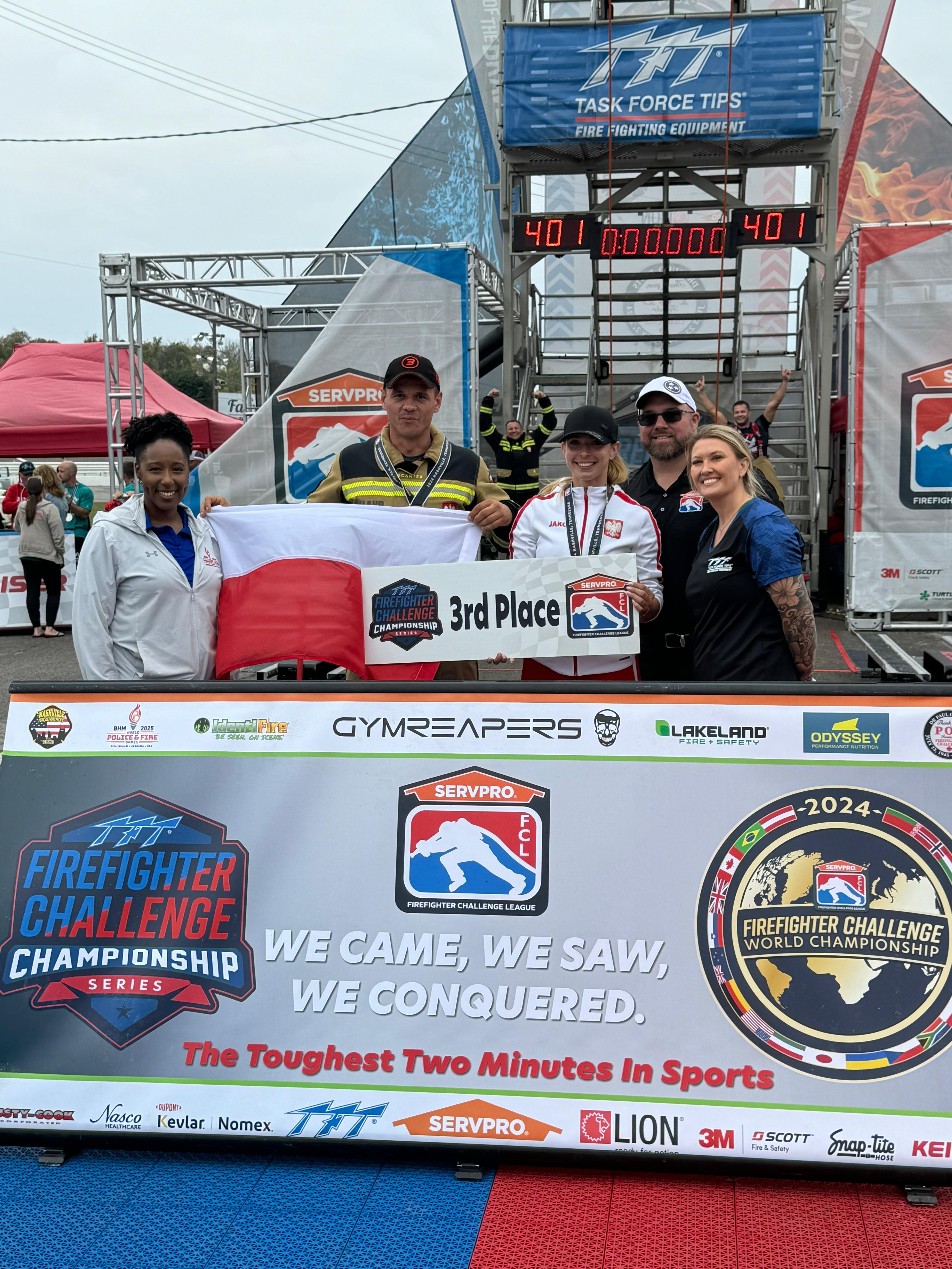 St. str. Beata Świderska, funkcjonariuszka Komendy Wojewódzkiej Państwowej Straży Pożarnej we Wrocławiu, zakończyła sezon startowy na Mistrzostwach Świata w FCC, które odbyły się w dniach 21-26 października w Nashville, USA. Występ ten okazał się wyjątkowo udany, gdyż Świderska zdobyła złoty medal w kategorii sztafetowej Mix, ustanawiając przy tym nowy Rekord Świata – osiągnięcie bez precedensu w historii polskiej sztafety strażackiej. Ponadto, st. str. Świderska, startując wspólnie ze starszym kapitanem Rafałem Berezą z Komendy Miejskiej PSP w Chełmie, zajęła trzecie miejsce w kategorii Tandem Mix, zdobywając brązowy medal. Duet Świderska-Bereza z sukcesami reprezentuje Polskę także na innych arenach sportowych – w tym roku wywalczyli mistrzostwo Polski, mistrzostwo Europy oraz mistrzostwo świata w formule FireFit w Kanadzie. Osiągnięcia Beaty Świderskiej i Rafała Berezy potwierdzają wysokie kompetencje polskich strażaków w międzynarodowych zawodach sportowych. Podczas mistrzostw w USA polski tandem ustąpił jedynie renomowanym zawodnikom z Kanady i Stanów Zjednoczonych, zajmując trzecie miejsce.