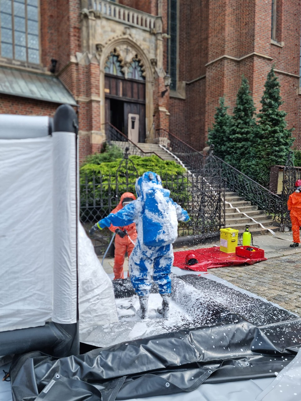 W dniu 28 czerwca 2022 r. odbyły się ćwiczenia ratownicze w obiekcie sakralnym – Kolegiacie pw. Świętego Krzyża i Świętego Bartłomieja we Wrocławiu. Założono, że podczas mszy dochodzi do rozbicia słoika z nieznaną substancją, która zaczyna parować i jest drażniąca dla uczestników. W ćwiczeniach brały udział m.in.: Specjalistyczna Grupa Chemiczno-Ekologiczna „Wrocław 3”, zespół do dekontaminacji wstępnej oraz dron z KW PSP.