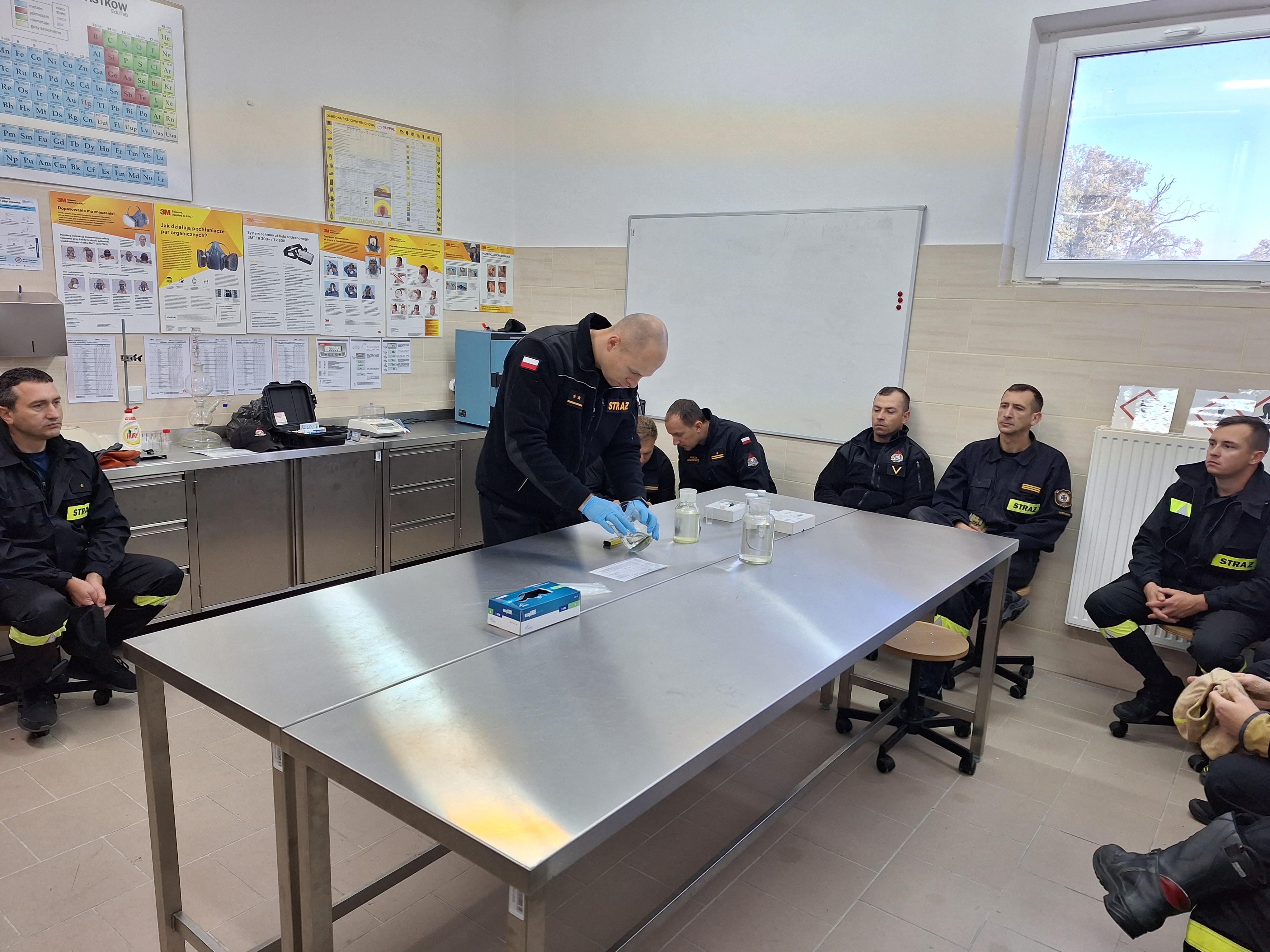 Przekrój tematów poruszanych na ćwiczeniach był bardzo szeroki począwszy od sposobów wydzielania się gazów niebezpiecznych z możliwością identyfikacji dostępnymi urządzeniami pomiarowo-analitycznymi, metodami pobierania próbek gazowych, stałych, i ciekłych. Omówiono również metody analizy zanieczyszczeń wody w miejscu prowadzonych działań w aspekcie posiadanego sprzętu. Prowadzono ćwiczenia praktyczne z badania dynamicznego pobranych próbek.
