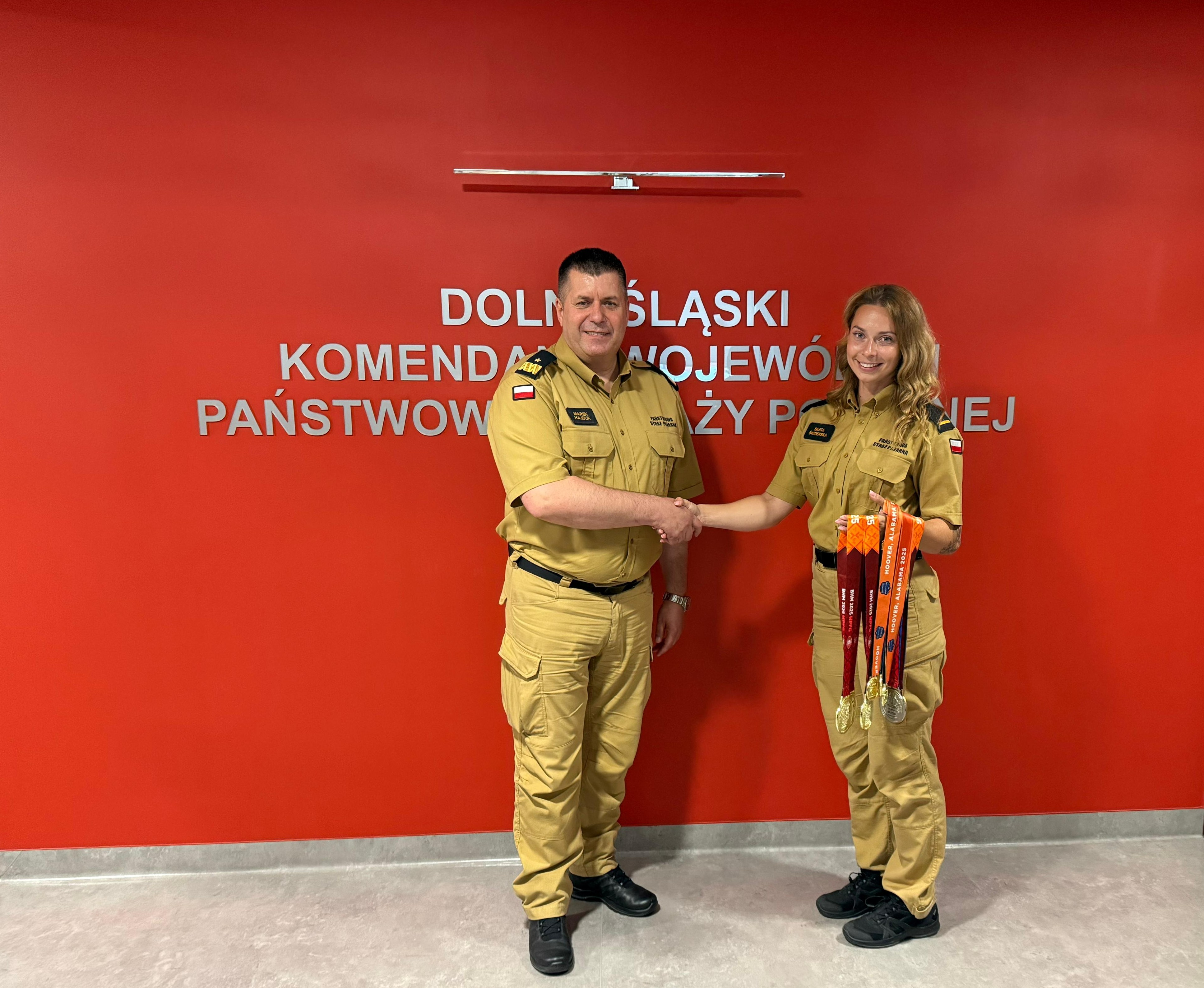 Podczas spotkania Komendant Wojewódzki pogratulował funkcjonariuszom osiągniętych wyników oraz podziękował za godne reprezentowanie formacji na arenie międzynarodowej.