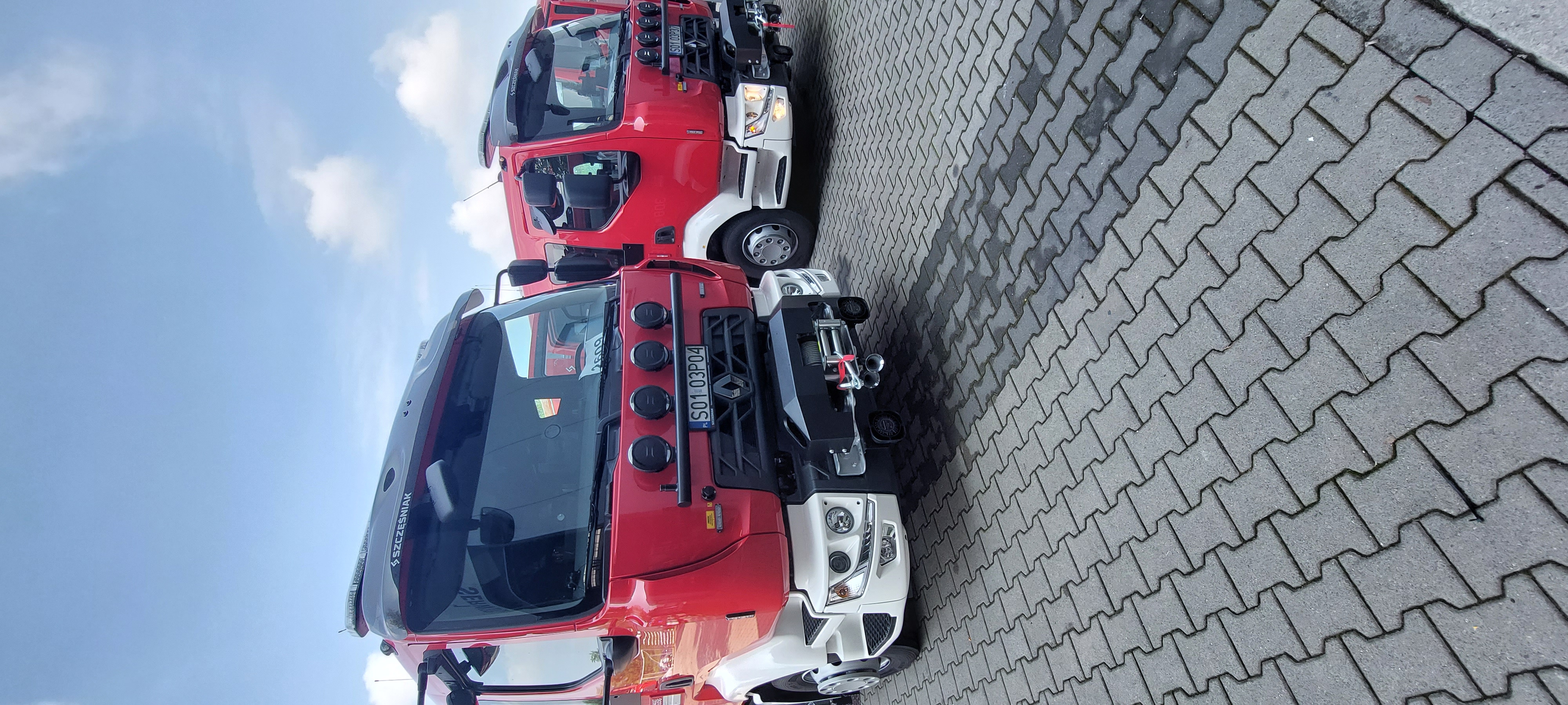 W dniu 22 czerwca br. na terenie fabryki „SZCZĘŚNIAK Pojazdy Specjalne Sp. z o.o.” zostały odebrane dwa średnie pojazdy ratowniczo-gaśnicze ze zwiększonym potencjałem ratownictwa drogowego z napędem 4x2 na podwoziu marki Renault, model D16.