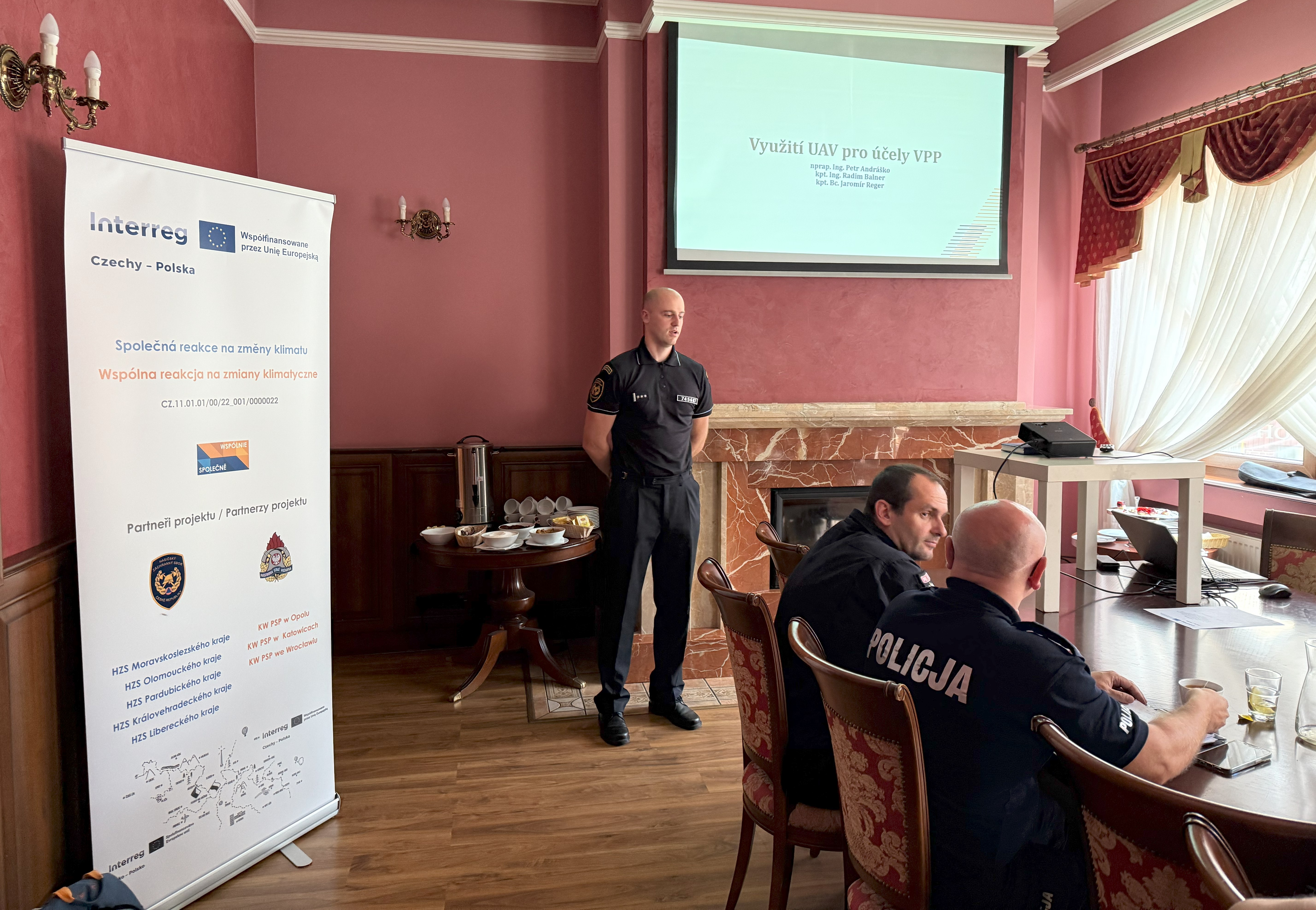 Program pierwszego dnia koncentrował się na wymianie doświadczeń w zakresie organizacji działań z użyciem dronów oraz współpracy między służbami – zarówno w Polsce, jak i w Czechach. Omawiano m.in. kwestie operacyjne związane bezzałogowymi statkami powietrznymi wykorzystywanymi przez straż pożarną oraz współpracę z Policją w tym współprace ze śmigłowcami, a także zasady rezerwacji przestrzeni powietrznej na potrzeby działań ratowniczych.