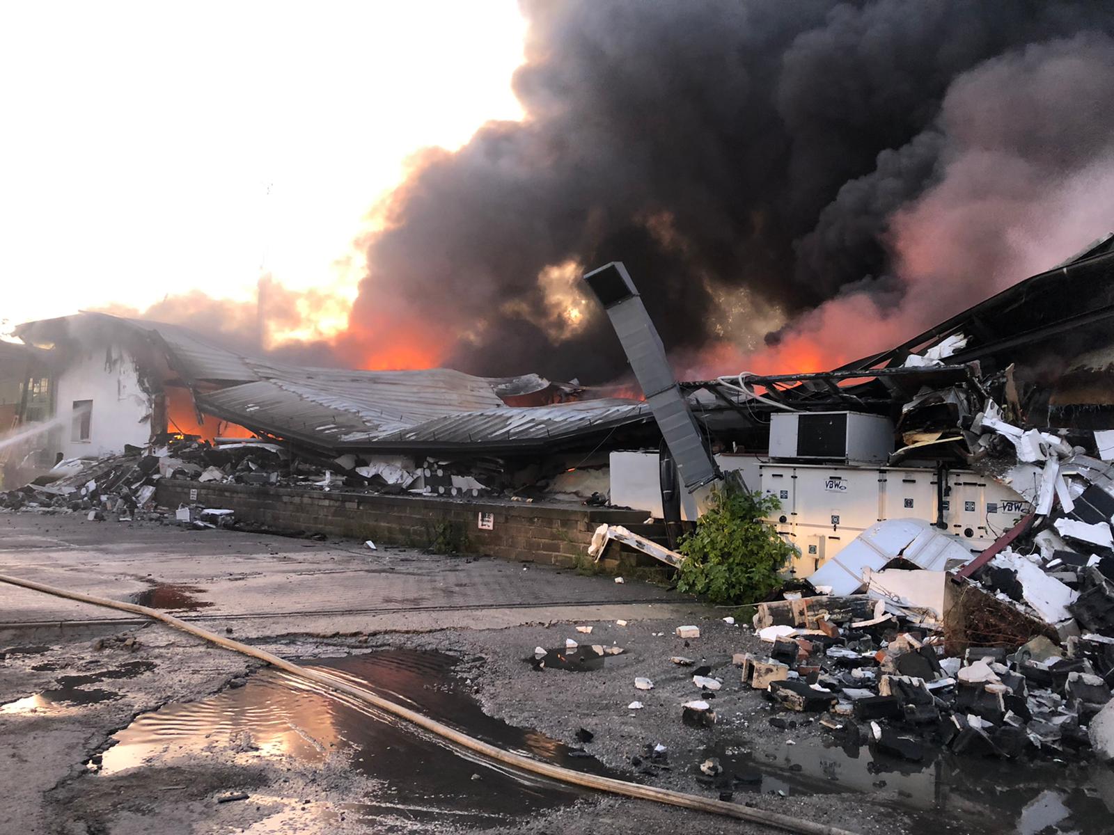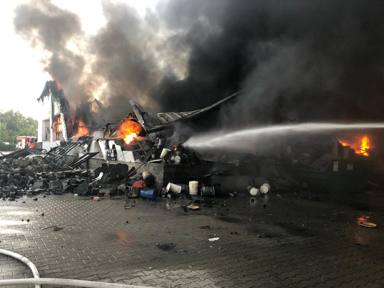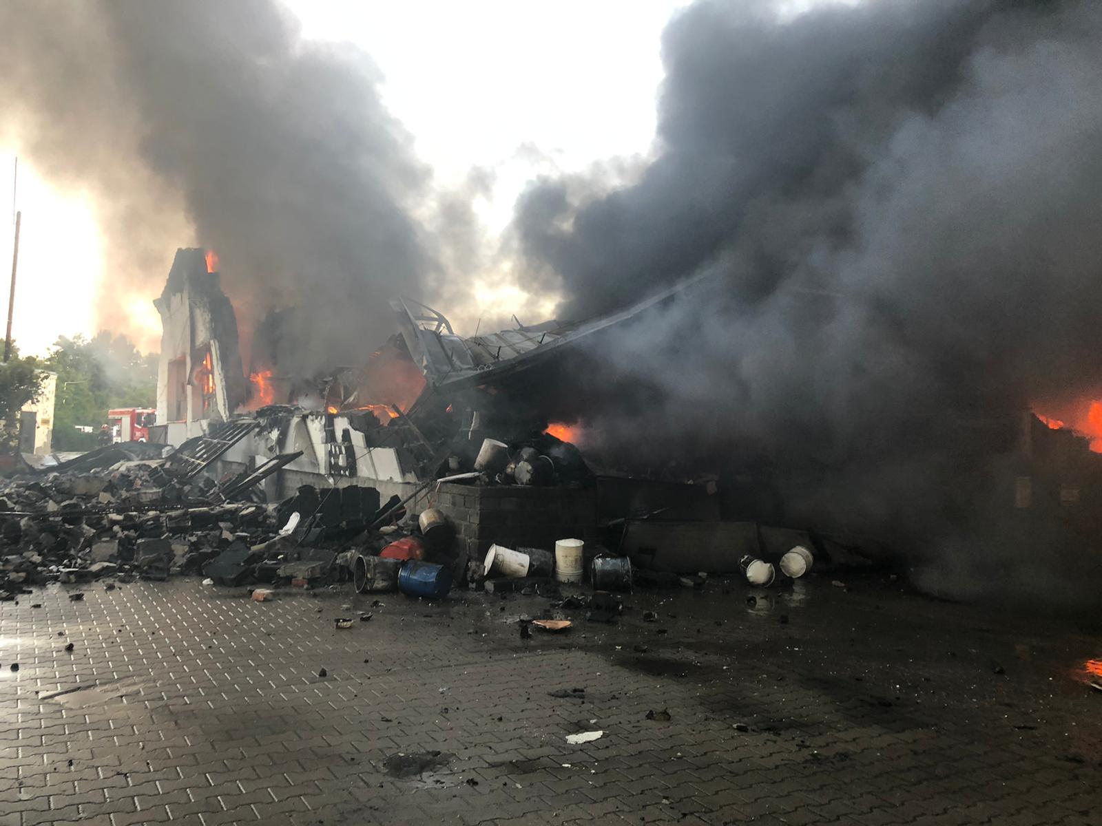 O tym jak bardzo gwałtowny był pożar świadczy m.in. to, że mimo prowadzonych działań gaśniczych, doszło do zawalenia hali. To z kolei utrudniło dotarcie strażaków do pożaru i jego ugaszenie. Konieczne bowiem było wprowadzenie ciężkiego sprzętu. Tymczasem wewnątrz hali znajdowało się sporo cennego sprzętu. Były to m.in. samochody osobowe marki Mercedes, Ford Conect i Renault Megan, wózki widłowe, agregat prądotwórczy itp. Wszystko to uległo spaleniu lub zniszczeniu.