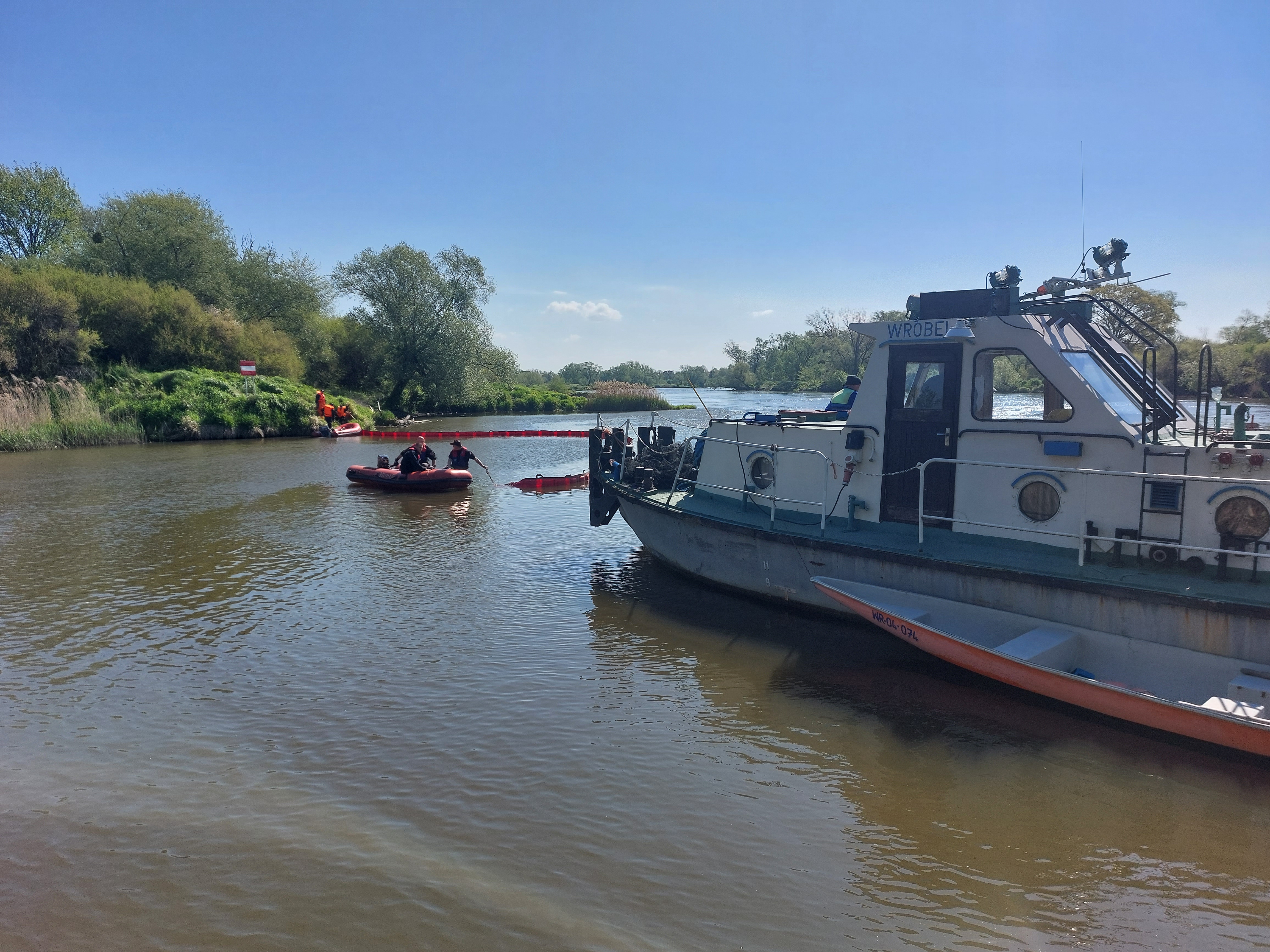 - zabezpieczyły prace prowadzone na wodzie polegające na założeniu siatki na kanale łączącym zalew Czernica z rzeką Odrą - prowadzone przez PGW Wody Polskie RZGW we Wrocławiu,