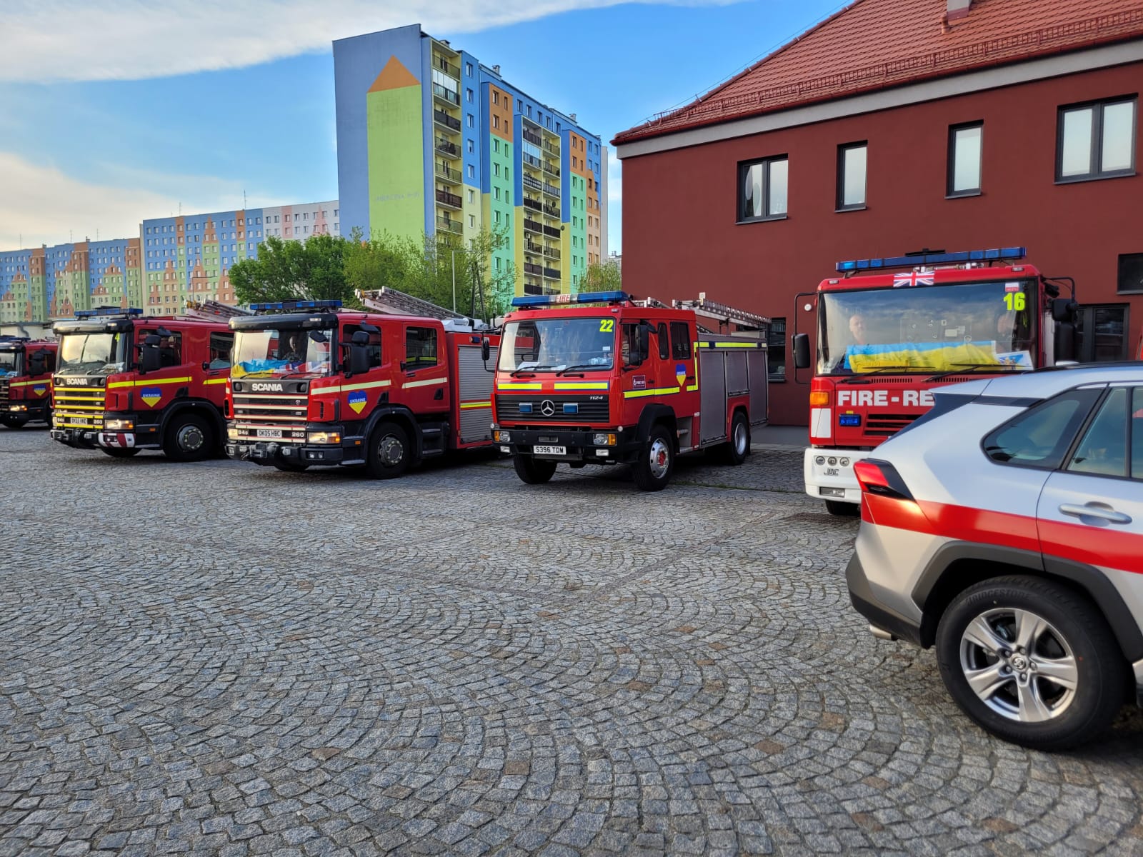 Na miejsce przekazania samochodów i sprzętu strażackiego przyleciała delegacja The National Fire Chiefs Council (NFCC) czyli Krajowej Rady Szefów Straży Pożarnych w Wielkiej Brytanii, która spotka się z komendantem głównym Straży Pożarnej Ukrainy.