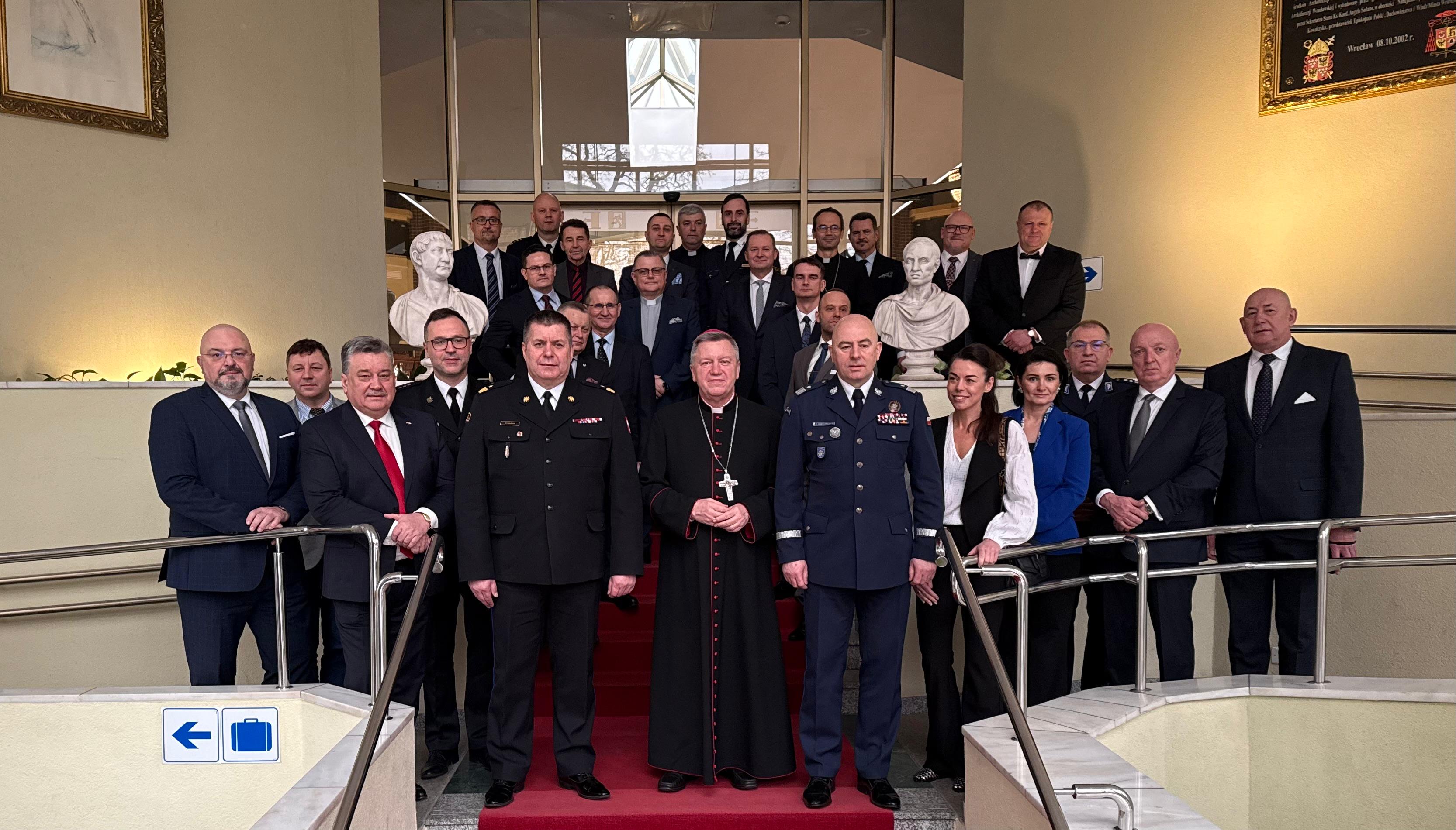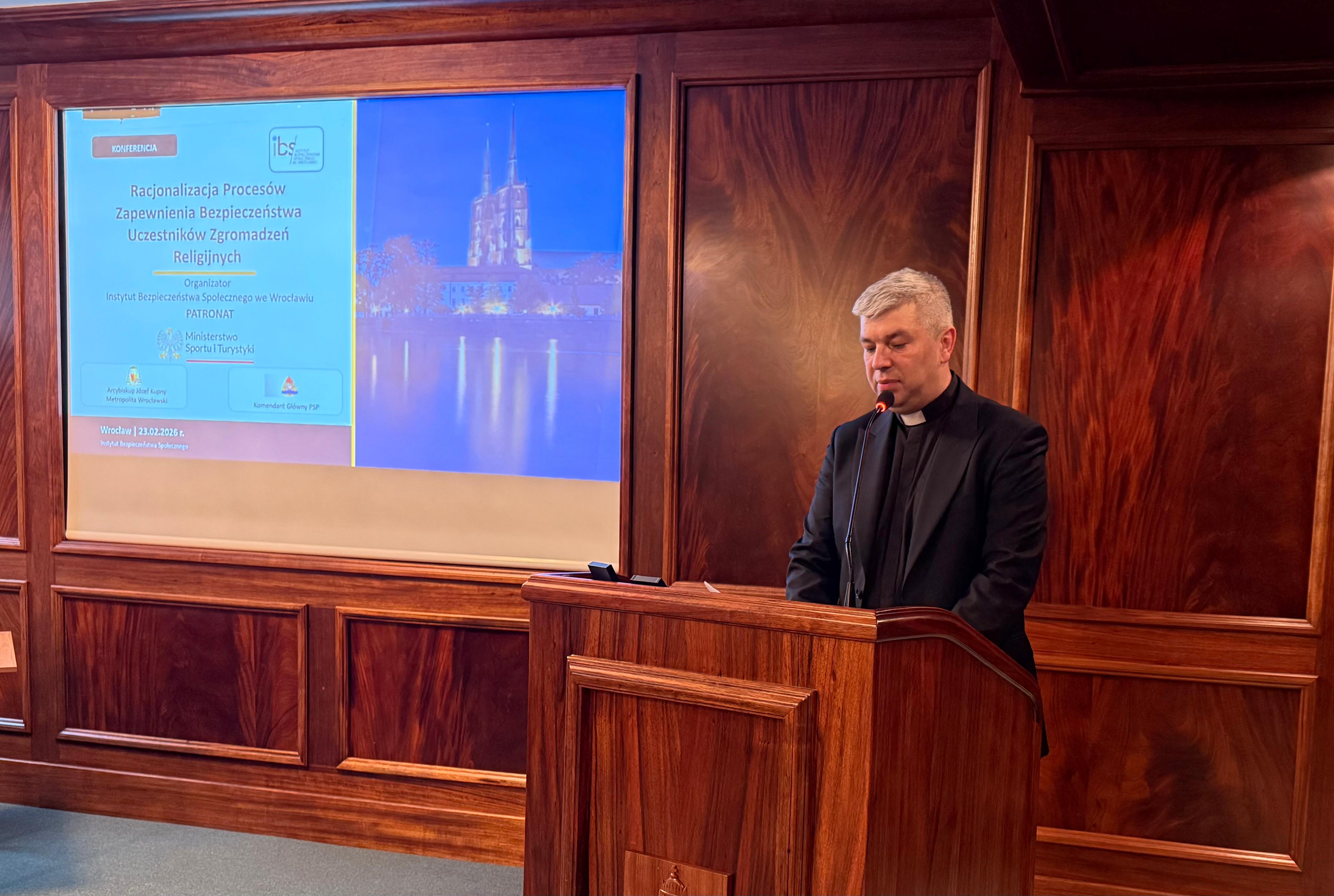 23 lutego 2026 r. we Wrocławiu odbyła się konferencja naukowa poświęcona zagadnieniom związanym z bezpieczeństwem podczas zgromadzeń religijnych. W wydarzeniu uczestniczyli przedstawiciele służb mundurowych, instytucji naukowych oraz eksperci ds. bezpieczeństwa.