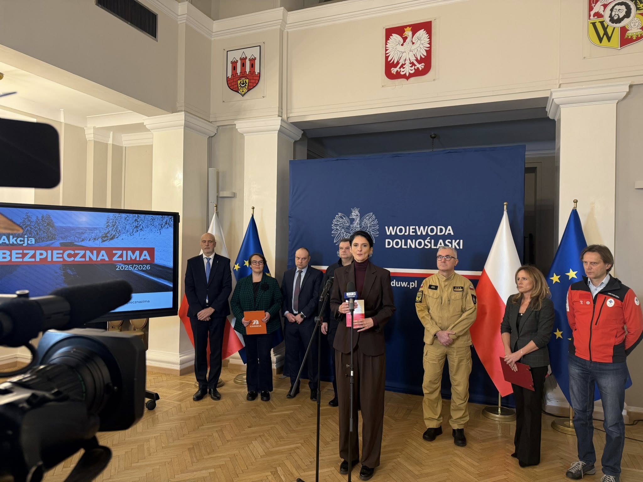 5 grudnia 2025 r. w Dolnośląskim Urzędzie Wojewódzkim odbyła się konferencja prasowa z udziałem Wojewody Dolnośląskiej Anny Żabskiej, poświęcona omówieniu działań służb i administracji w związku z rozpoczęciem sezonu zimowego.