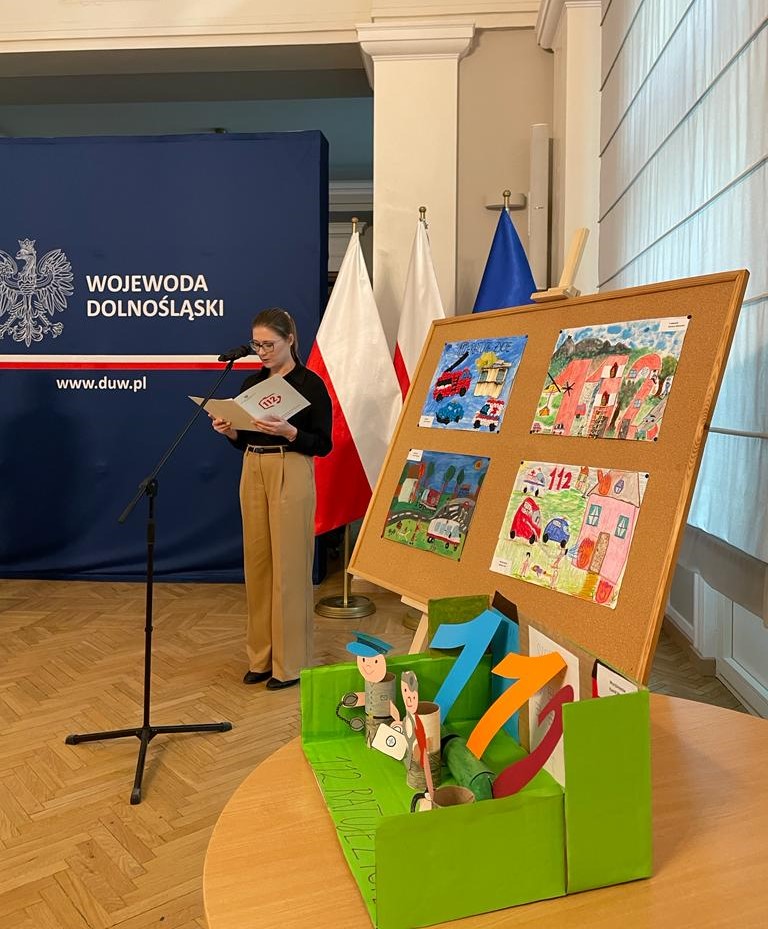 Zastępca dolnośląskiego komendanta wojewódzkiego Państwowej Straży Pożarnej st. bryg. Bogusław Brud wziął udział w uroczystej gali wręczenia nagród w konkursie pn. „ Wojewódzki konkurs plastyczny dla dzieci I klas szkoły podstawowej - 112 ratuje życie”.