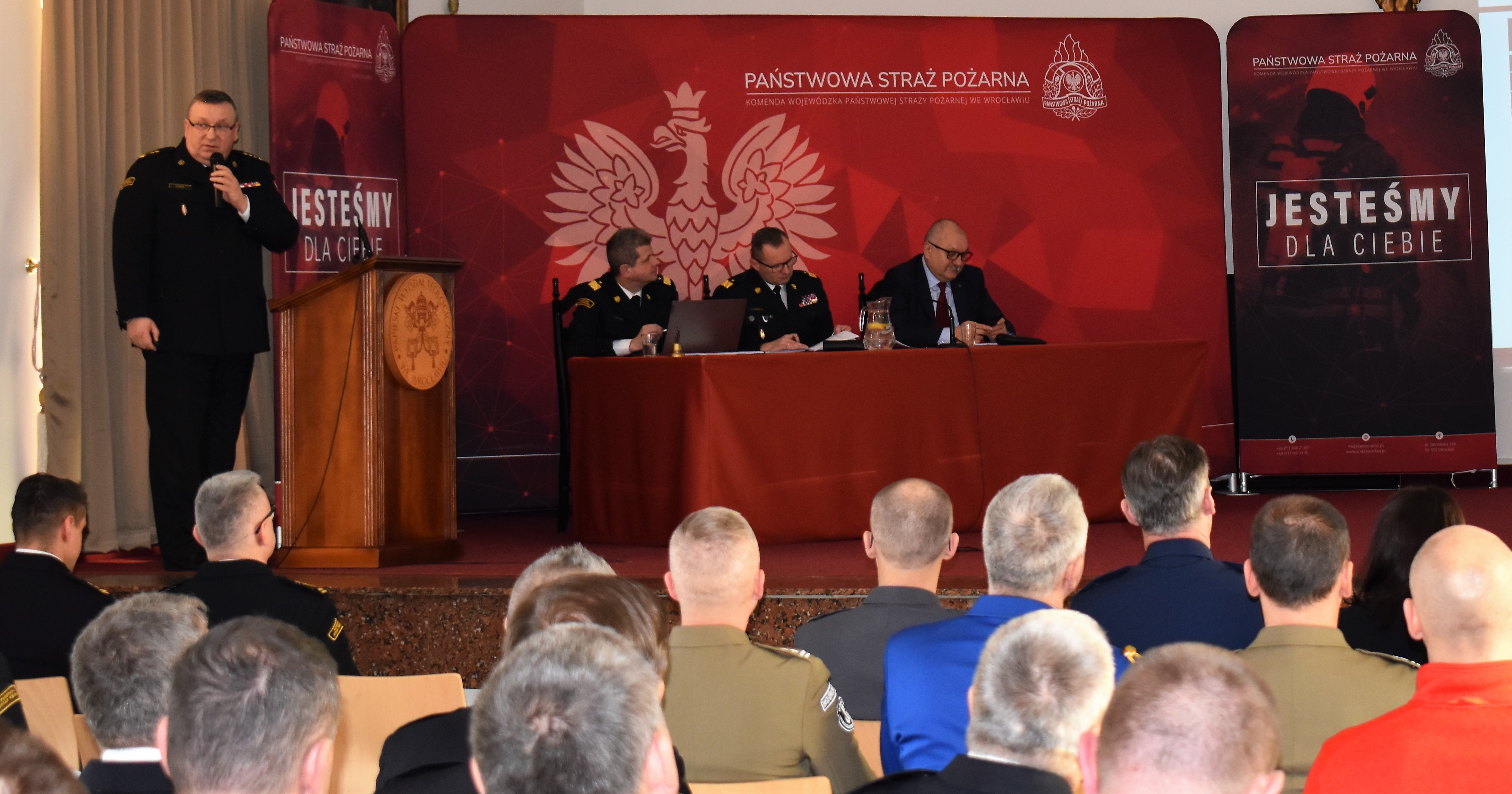 W odprawie podsumowującej działalność dolnośląskich strażaków w 2022 roku udział wzięli również: