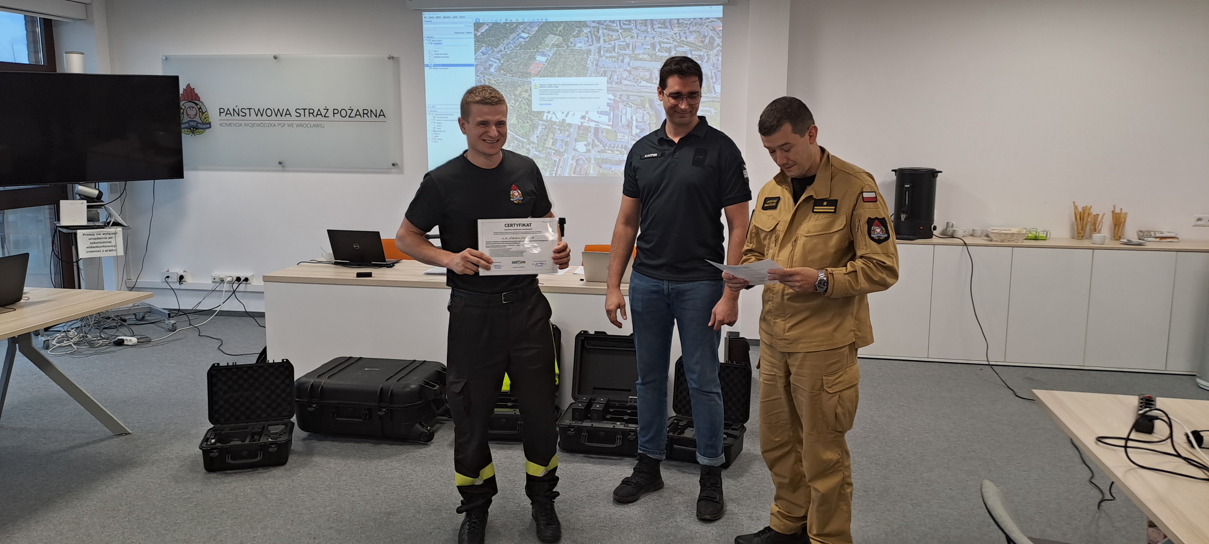 Przekazaniu dronów towarzyszył czterodniowy cykl szkoleń przeprowadzony przez przedstawicieli BZBUAS w siedzibie KW PSP we Wrocławiu, gdzie strażacy