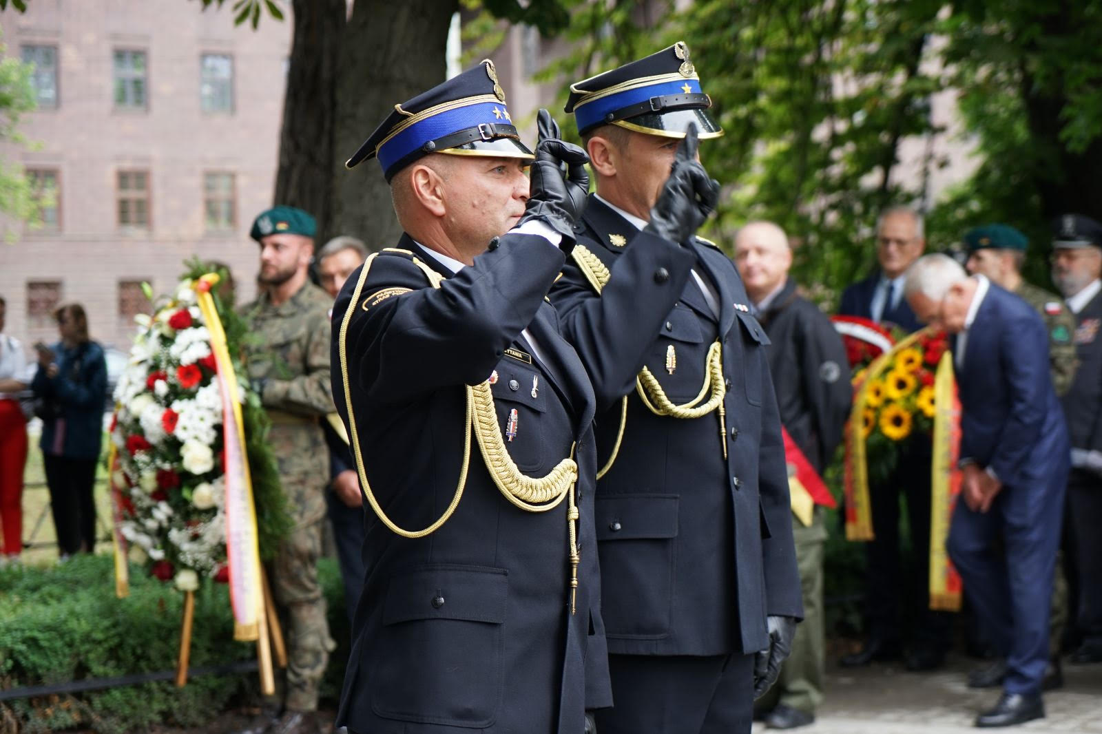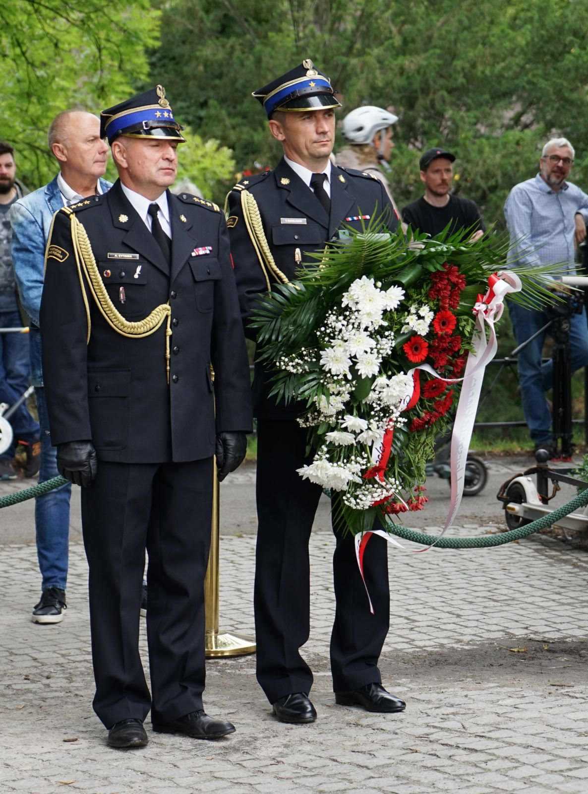się z hołdem i chwałą dla bohaterów walki o wolność. W wydarzeniu wzięli udział ważni goście, st. bryg. Arkadiusz Cytawa, Zastępca Dolnośląskiego Komendanta Państwowej Straży Pożarnej we Wrocławiu, oraz mł. bryg. mgr inż. Tomasz Szwajnos, Zastępca Komendanta Miejskiego PSP we Wrocławiu.