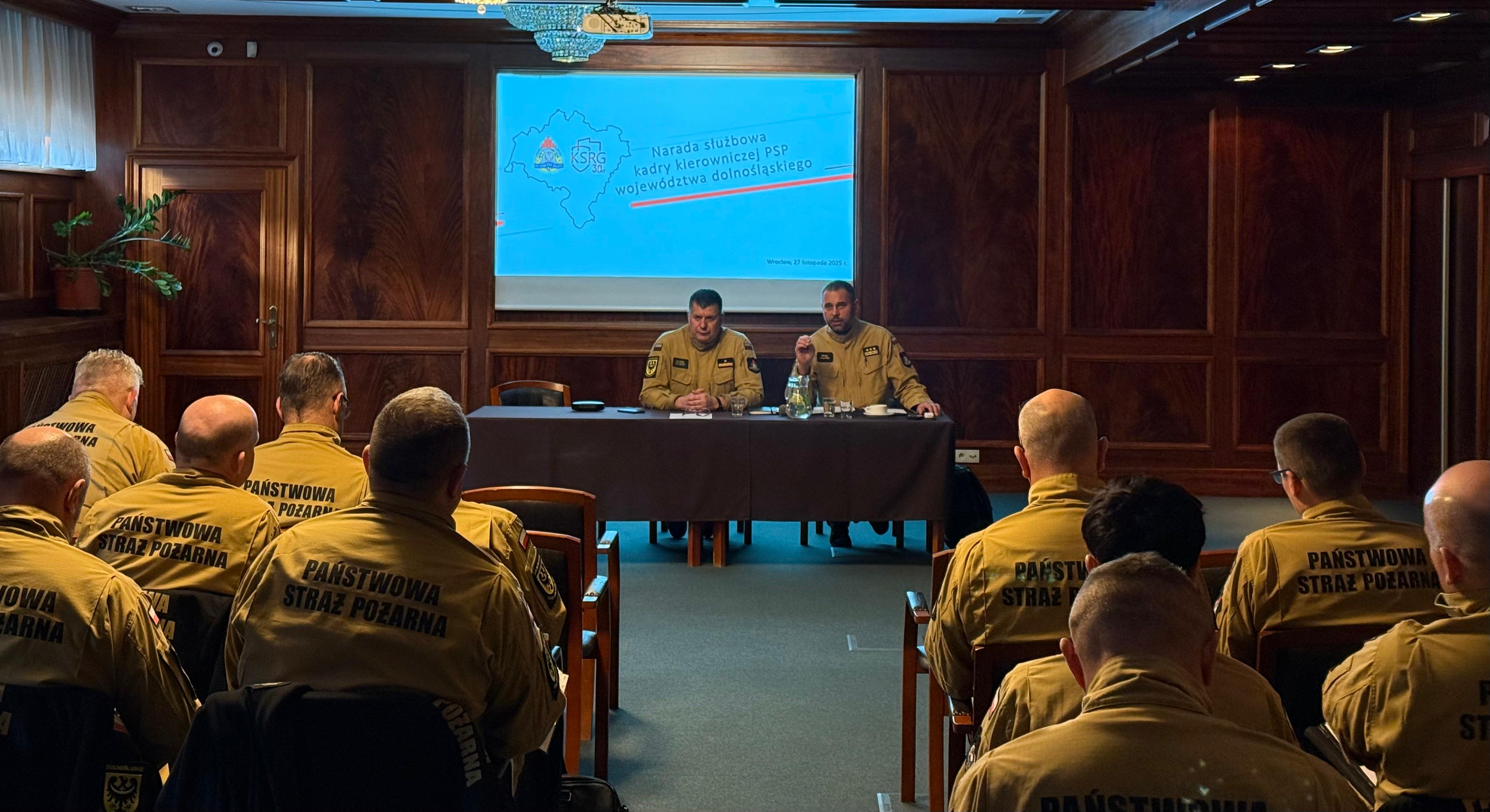 27 listopada 2025 r. we Wrocławiu odbyła się odprawa służbowa. W spotkaniu uczestniczyli: kierownictwo Komendy Wojewódzkiej PSP we Wrocławiu, naczelnicy wydziałów, przedstawiciele samodzielnych stanowisk oraz komendanci miejscy i powiatowi PSP województwa dolnośląskiego.
