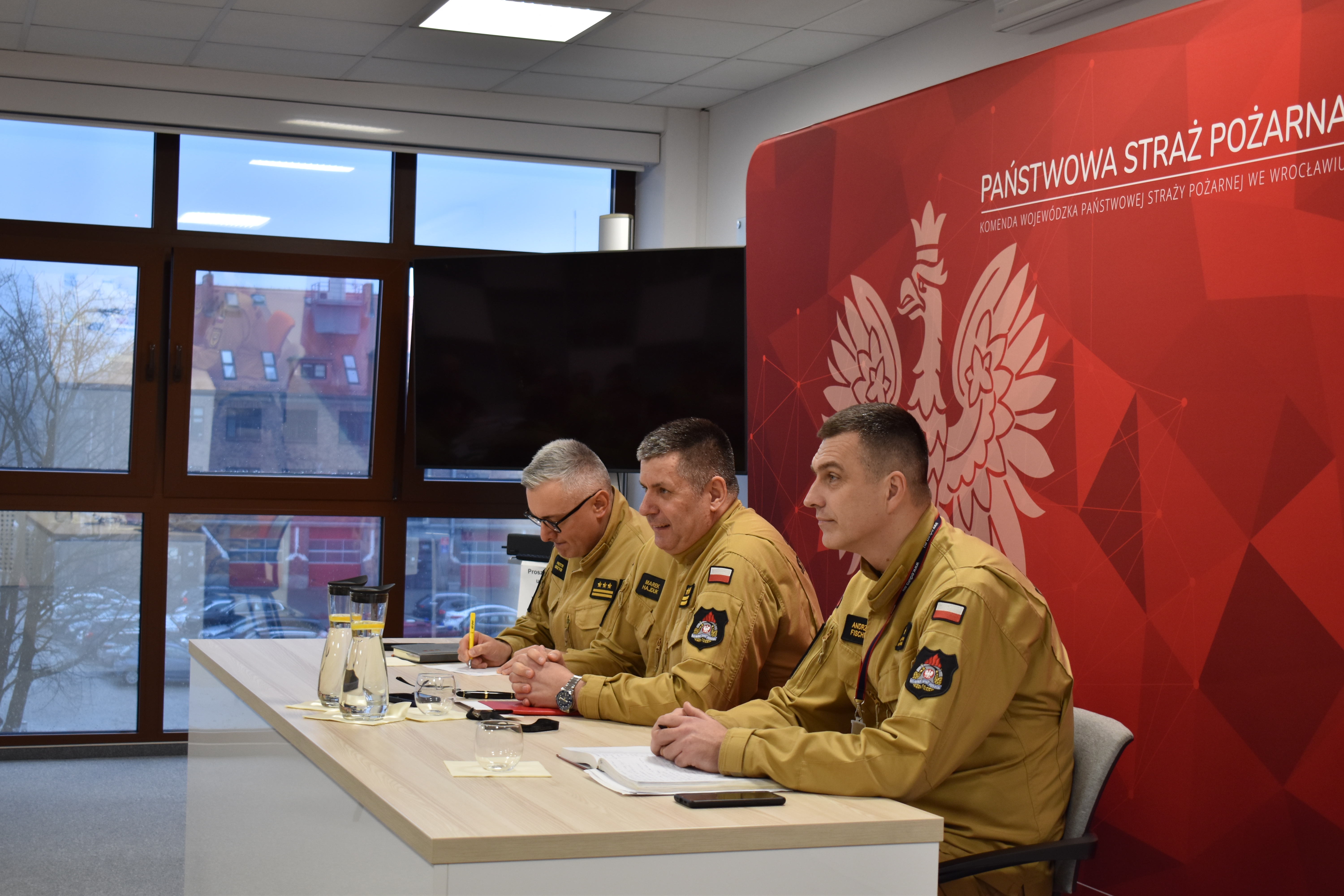 W dniu 12 marca 2024 r. w siedzibie Komendy Wojewódzkiej Państwowej Straży Pożarnej we Wrocławiu odbyła się odprawa, w której uczestniczyło Kierownictwo Komendy Wojewódzkiej, naczelnicy wydziałów oraz samodzielne stanowiska z Panią Komendant i Panami Komendantami komend miejskich i powiatowych PSP woj. dolnośląskiego.