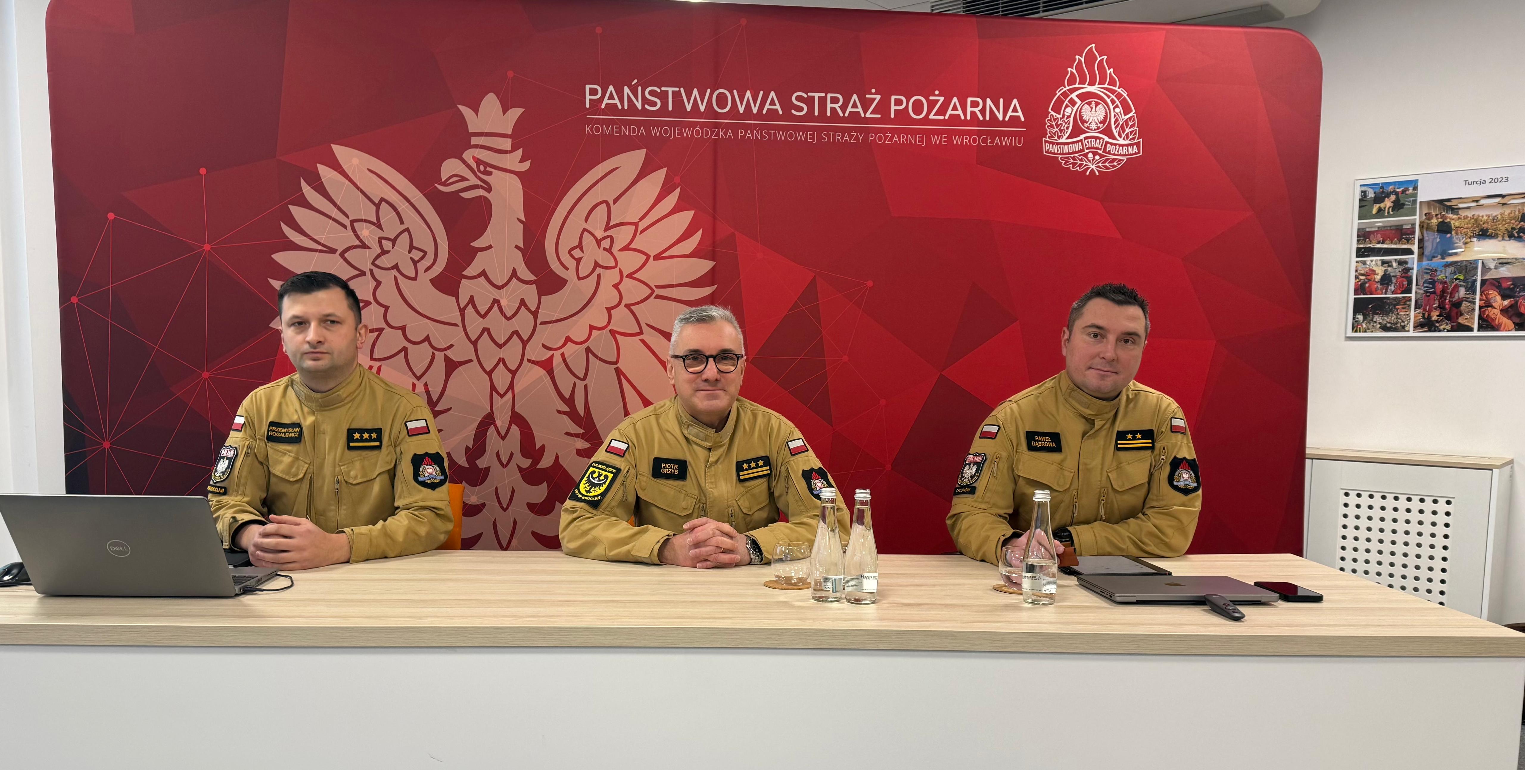 st. bryg. Piotr Grzyb. W spotkaniu uczestniczyli m.in. Dowódca operacyjny modułu GFFF Wrocław kpt. Przemysław Rogalewicz, bryg. Paweł Dąbrowa – oficer łącznikowy GFFF, a także strażacy wyznaczeni do pełnienia służby w module.