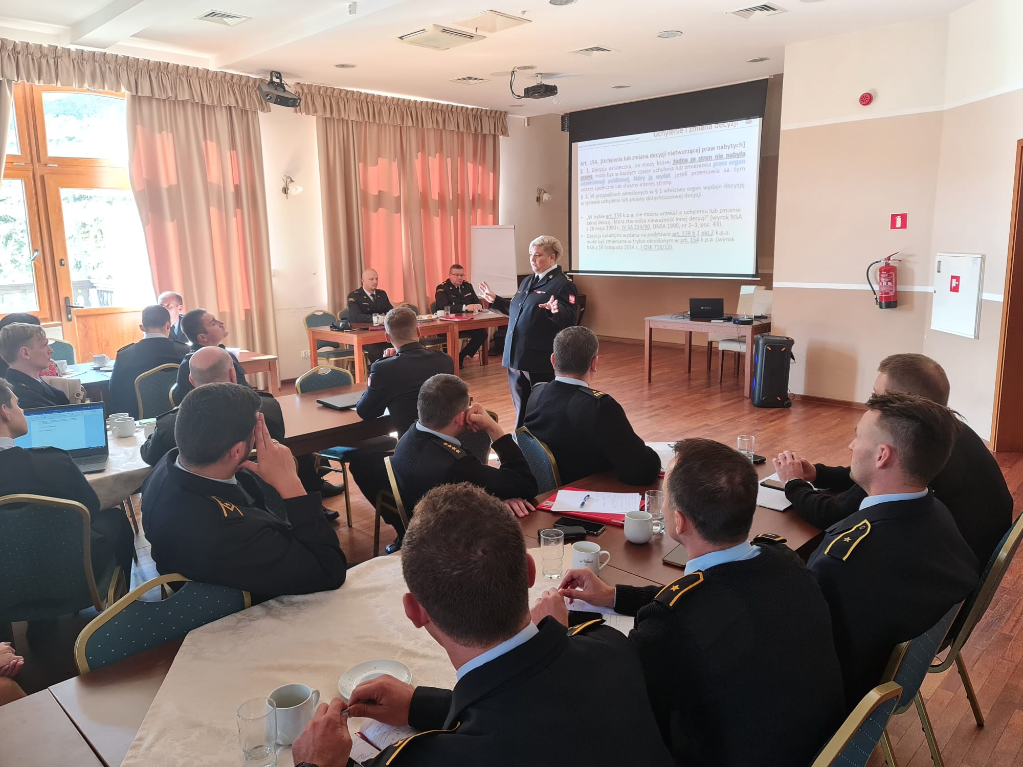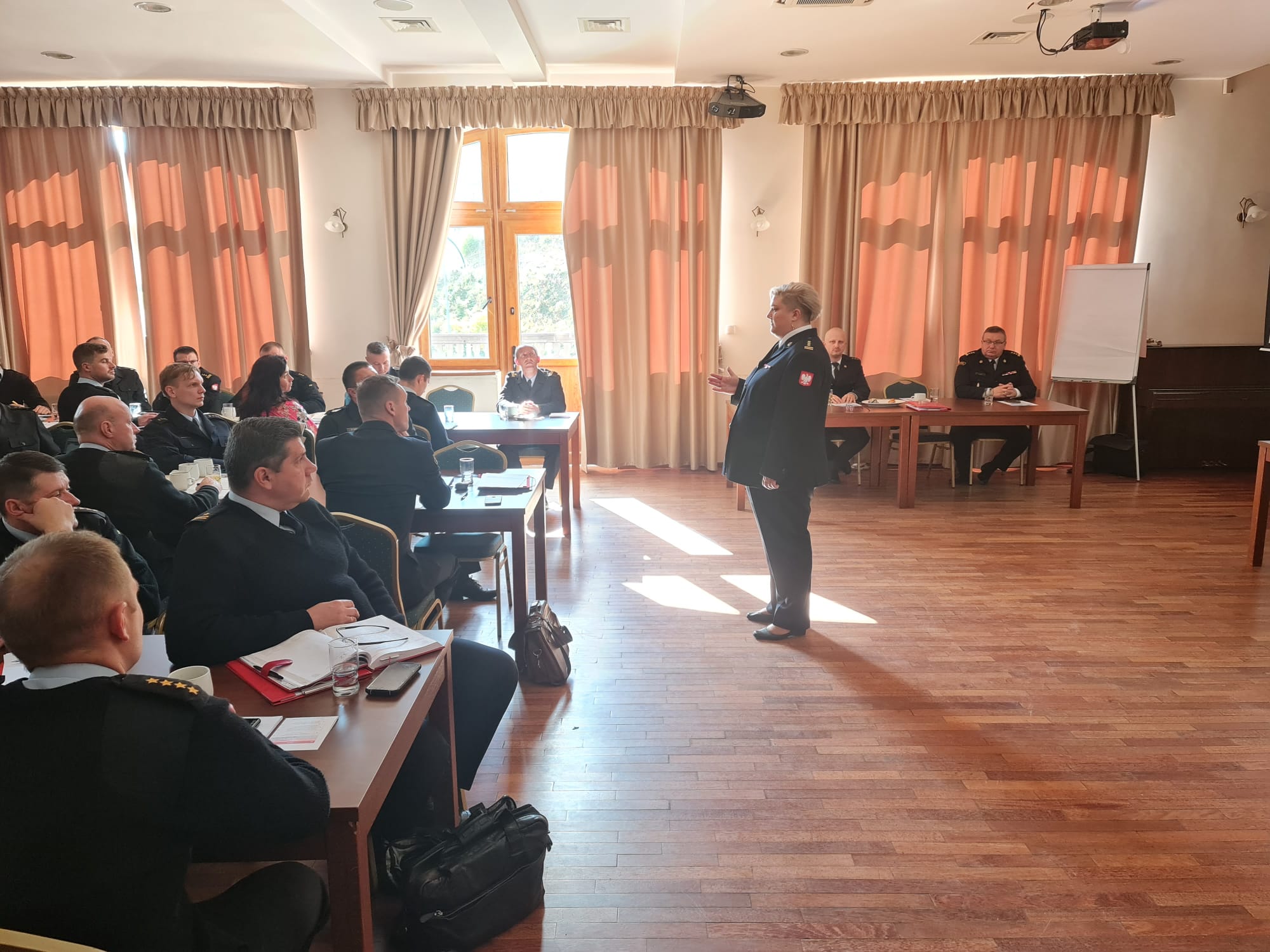 Odprawę szkoleniową rozpoczął st. bryg. Bogusław Brud – Zastępca Dolnośląskiego Komendanta Wojewódzkiego PSP we Wrocławiu. W pierwszym dniu swoje prelekcje wygłosili m.in.: st. bryg. Adrianna Koniuch – naczelnik Wydziału Nadzoru Prewencyjnego BPZ KG PSP i st. bryg. Rafał Lik – naczelnik Wydziału Kontrolno-Rozpoznawczego KW PSP we Wrocławiu. W drugim prelekcje wygłoszą m.in.: kpt. Grzegorz Sobieszek – starszy specjalista Wydziału Nadzoru Prewencyjnego BPZ KG PSP i bryg. Marta Kacprzycka – naczelnik Wydziału Kontrolno-Rozpoznawczego KW PSP w Poznaniu.