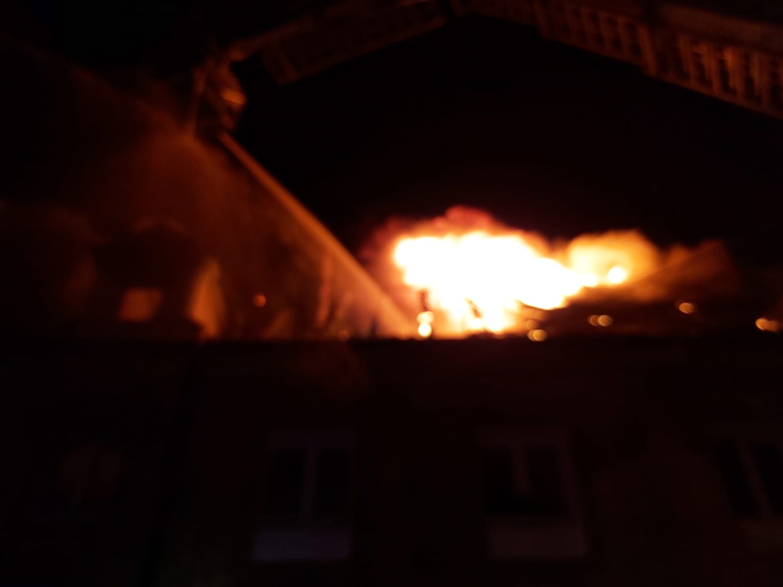 W sumie strażacy podali siedem prądów wody, co pozwoliło zlokalizować pożar,a następnie skutecznie go ugasić. Niejako „po drodze” nie obyło się jednak bez epizodów trudnych i niebezpiecznych dla ratowników. W pewnym momencie na strop zawaliła się mocno nadpalona drewniana konstrukcja dachu. Powstało tym samym kolejne zagrożenie ponieważ mogło dojść do zawalenia osłabionego stropu poddasza. Tymczasem strażacy musieli prowadzić dogaszanie spalonych części wnętrza budynku jak i elementów konstrukcji dachu.