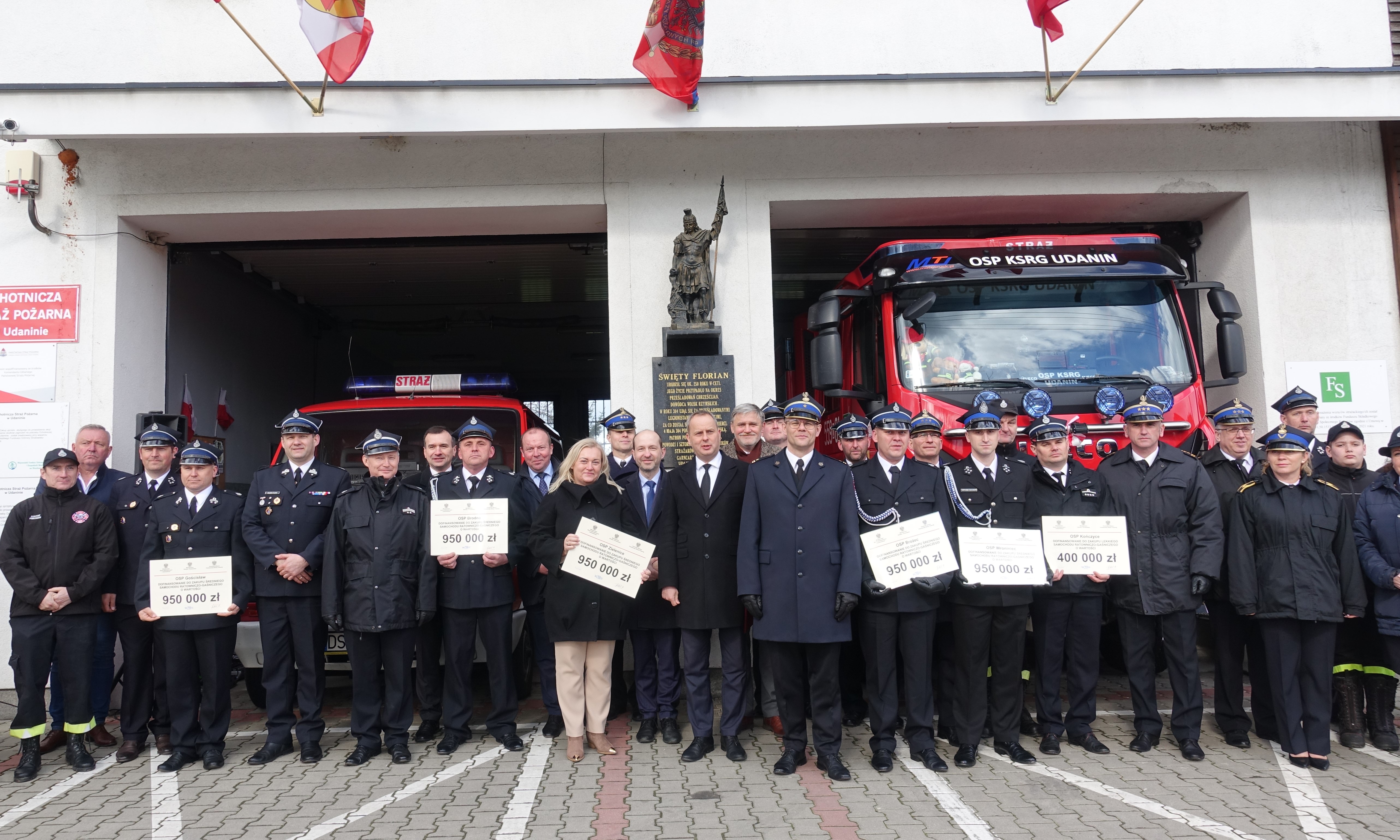 W poniedziałkowe popołudnie 27 marca 2023 r. rozpoczęto uroczyste przekazywanie promes na dofinansowanie zakupów pojazdów ratowniczo – gaśniczych dla ochotniczych straży pożarnych z terenu województwa dolnośląskiego. Podczas pierwszej z pięciu zaplanowanych zbiórek, która odbyła się przed remizą Ochotniczej Straży Pożarnej w Udaninie w pow. średzkim, wręczono promesy dla 7 OSP z powiatów: średzkiego (OSP Brodno, OSP Gościsław), oławskiego (OSP Kończyce, OSP Goszczyna), strzelińskiego (OSP Brożec, OSP Zielenice) i górowskiego (OSP Wroniniec).
