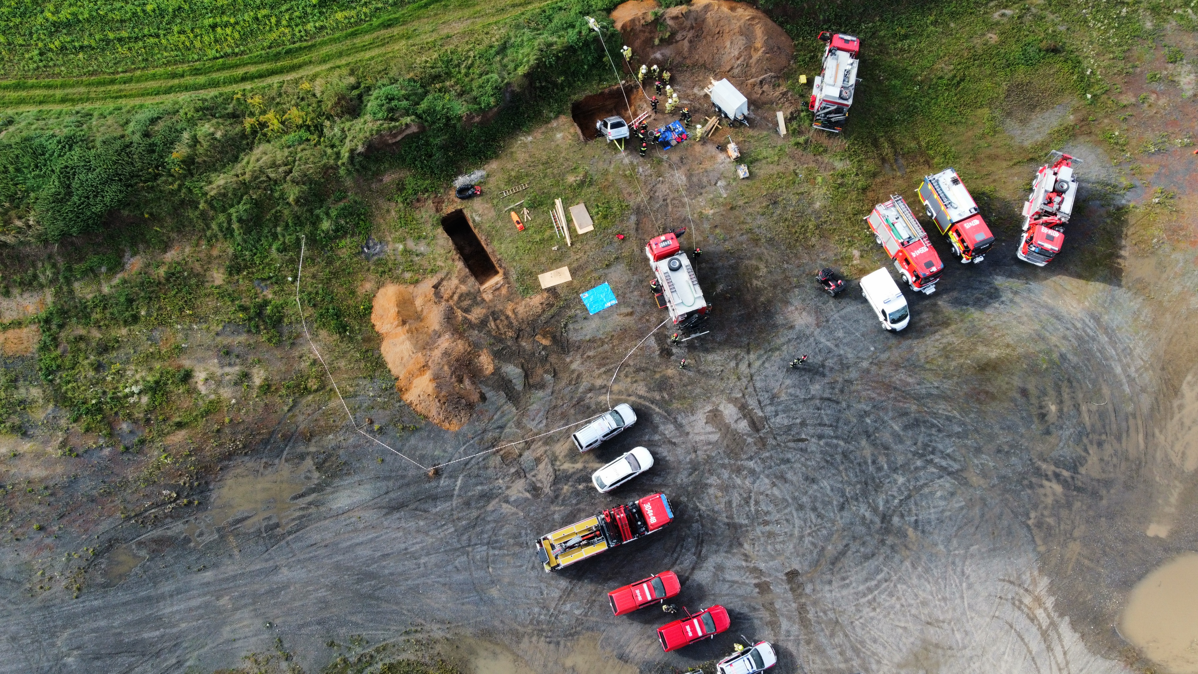 Grupy ćwiczące zrealizowały zadania polegające na stabilizacji wykopów i nasypów ziemnych, w tym ewakuacji osoby poszkodowanej z wykopu oraz zabezpieczeniu i wydobyciu pojazdu osobowego typu minivan. Dodatkowo przemieszczano ciężkie gabaryty z wykopu kopalnianego – pojazdu typu „wozidło”. Ponadto ewakuowano osobę poszkodowaną ze statku powietrznego po katastrofie w miejscu trudnodostępnym, z jednoczesnym wydobyciem wraku za pomocą technik linowych i zasobów sprzętowych ciężkich samochodów ratownictwa technicznego.