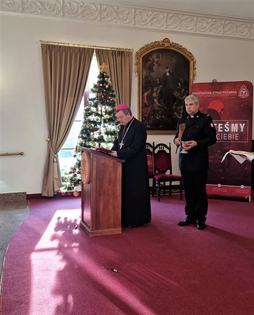 W minioną środę we wrocławskim Metropolitalnym Wyższym Seminarium Duchownym, odbyło się bożonarodzeniowe spotkanie opłatkowe dolnośląskich strażaków. Organizatorami spotkania byli nadbryg. Marek Kamiński dolnośląski komendant wojewódzki Państwowej Straży Pożarnej oraz ks. Artur Szela kapelan dolnośląskich strażaków. W uroczystości udział wzięli: arcybiskup Józef Kupny Metropolita Wrocławski oraz przedstawiciele: Dolnośląskiego Urzędu Wojewódzkiego, Policji, Wojska, Wojewódzkiego Funduszu Ochrony Środowiska i Gospodarki Wodnej we Wrocławiu, Pogotowia Ratunkowego, Wodnego Ochotniczego Pogotowia Ratunkowego.