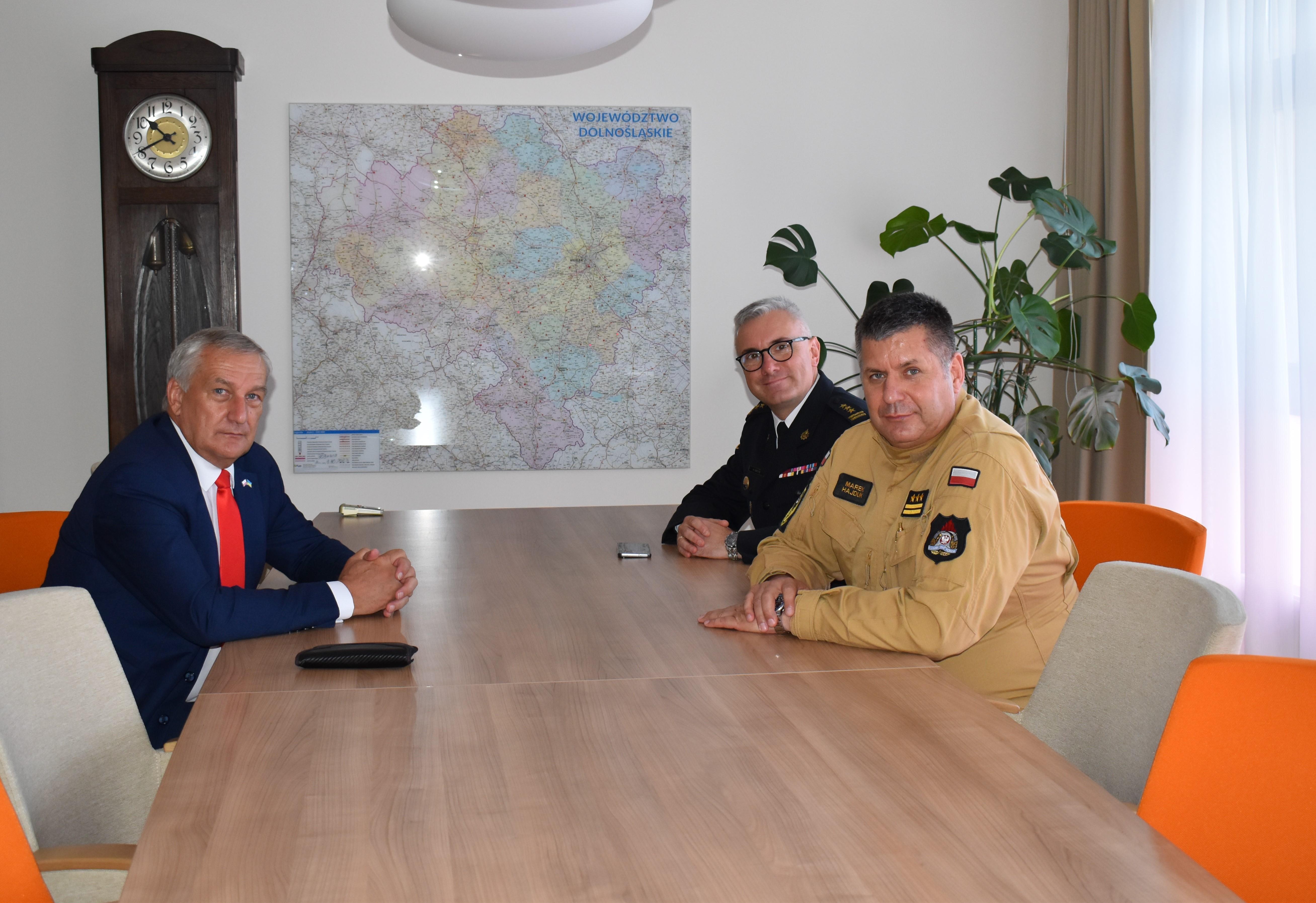 16 sierpnia 2024 r. w siedzibie Dolnośląskiej Komendy Wojewódzkiej PSP we Wrocławiu odbyło się kluczowe spotkanie dotyczące przyszłości infrastruktury ratowniczej na Dolnym Śląsku. W rozmowach uczestniczyli Dolnośląski Komendant Wojewódzki PSP, st. bryg. Marek Hajduk, jego zastępca st. bryg. Piotr Grzyb oraz Sekretarz Stanu w Ministerstwie Spraw Wewnętrznych i Administracji, Wiesław Szczepański.