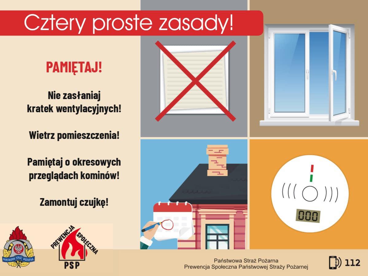 • W okresie grzewczym wzrasta ryzyko powstania pożarów i zatruć tlenkiem węgla w budynkach mieszkalnych. Źródłem emisji tlenku węgla są urządzenia grzewcze opalane drewnem, węglem, gazem, olejem opałowym.