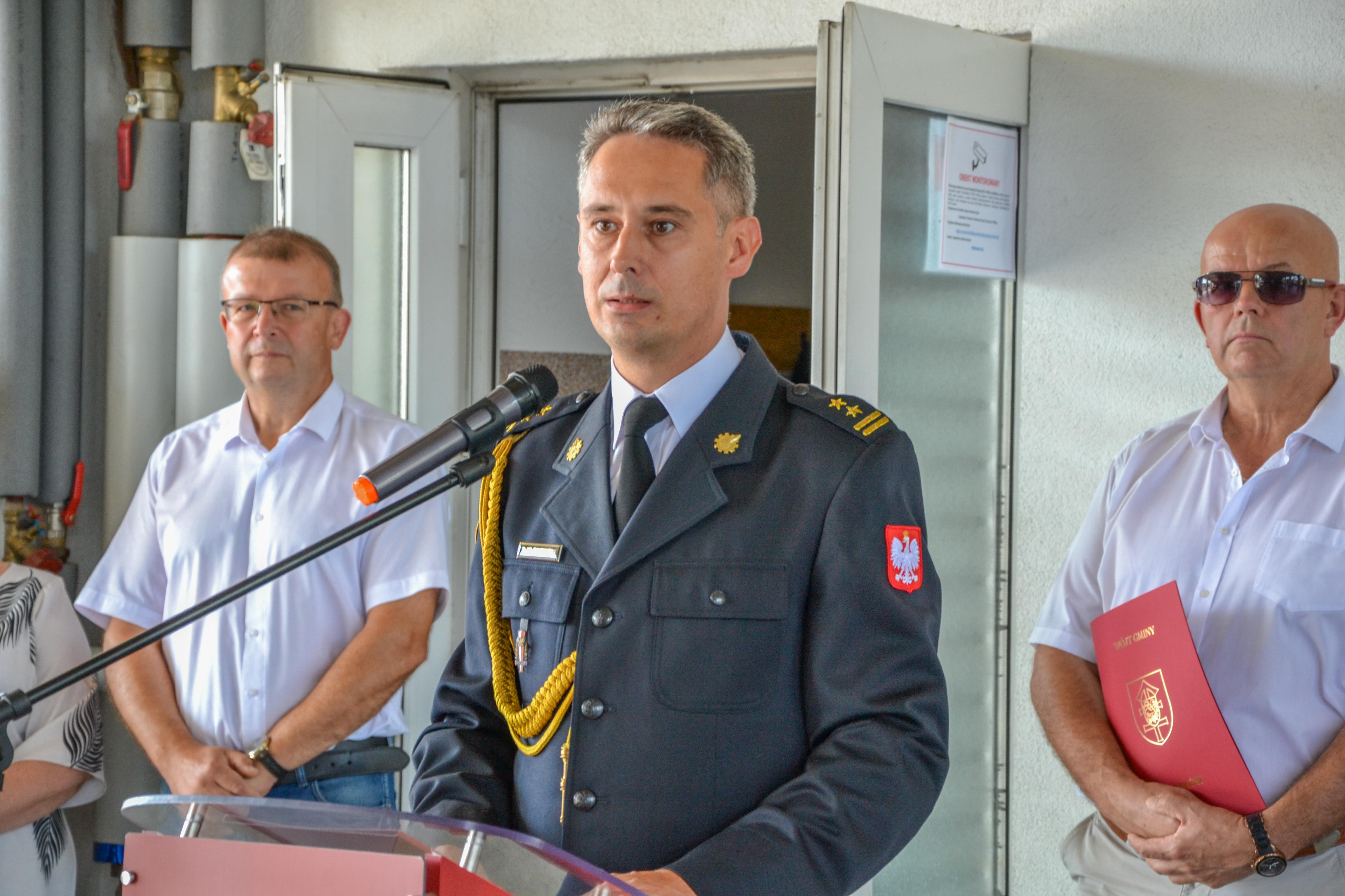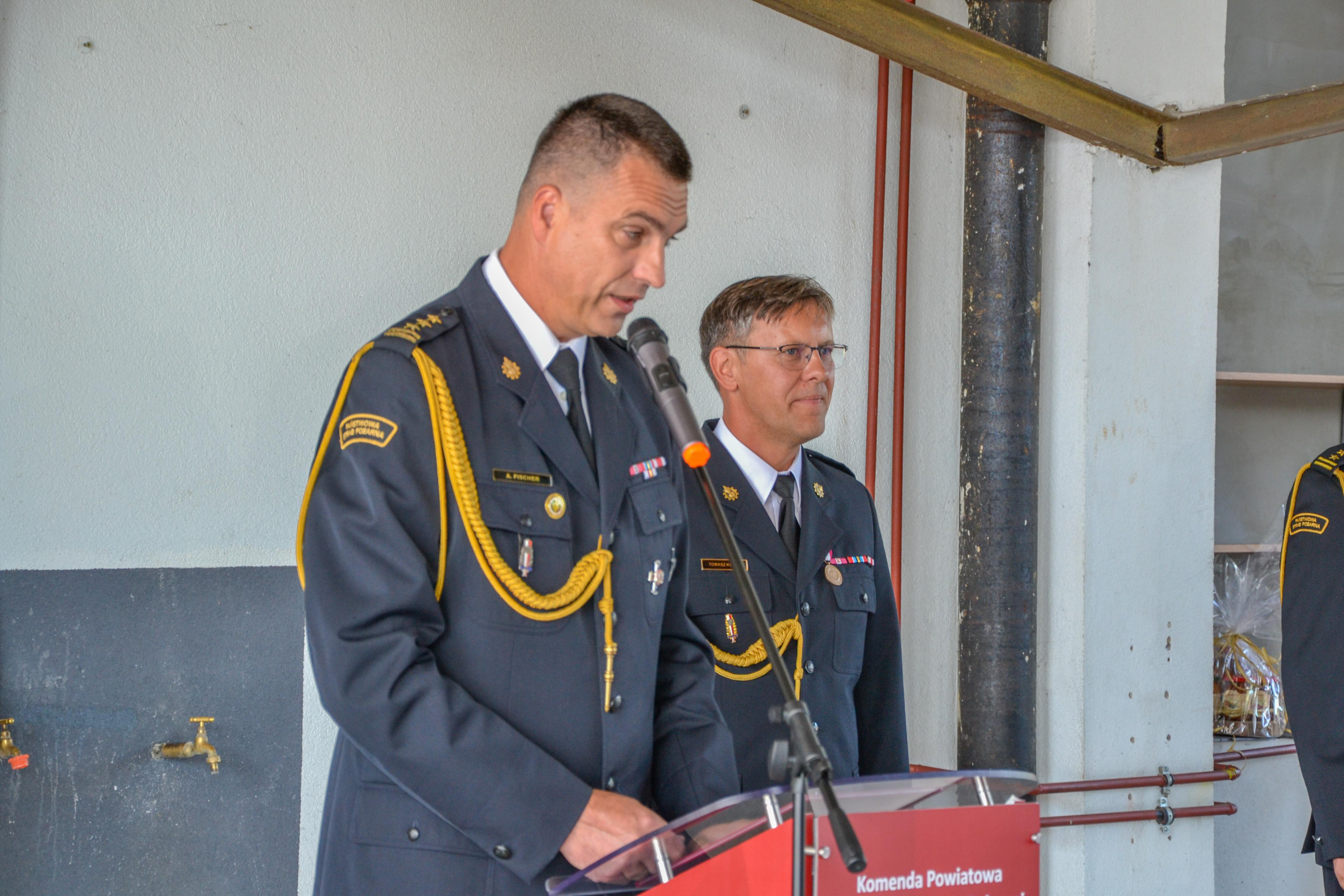 W uroczystości uczestniczył Zastępca Dolnośląskiego Komendanta Wojewódzkiego PSP we Wrocławiu, st. bryg. Andrzej Fischer, oraz Naczelnik Wydziału Kadr w KW PSP we Wrocławiu, st. kpt. Przemysław Wróbel.