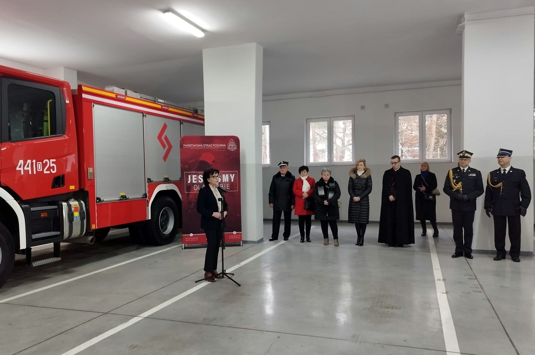 Pani Elżbieta Witek Marszałek Sejmu Rzeczypospolitej Polskiej oraz nadbrygadier Adam Konieczny zastępca komendanta głównego Państwowej Straży Pożarnej w swoich przemówieniach m.in. pogratulowali otrzymania nowych wozów i podkreślili jak istotne jest doposażanie jednostek Straży Pożarnych w sprzęt i wozy ale także wymiana sprzętu i wozów na nowe.