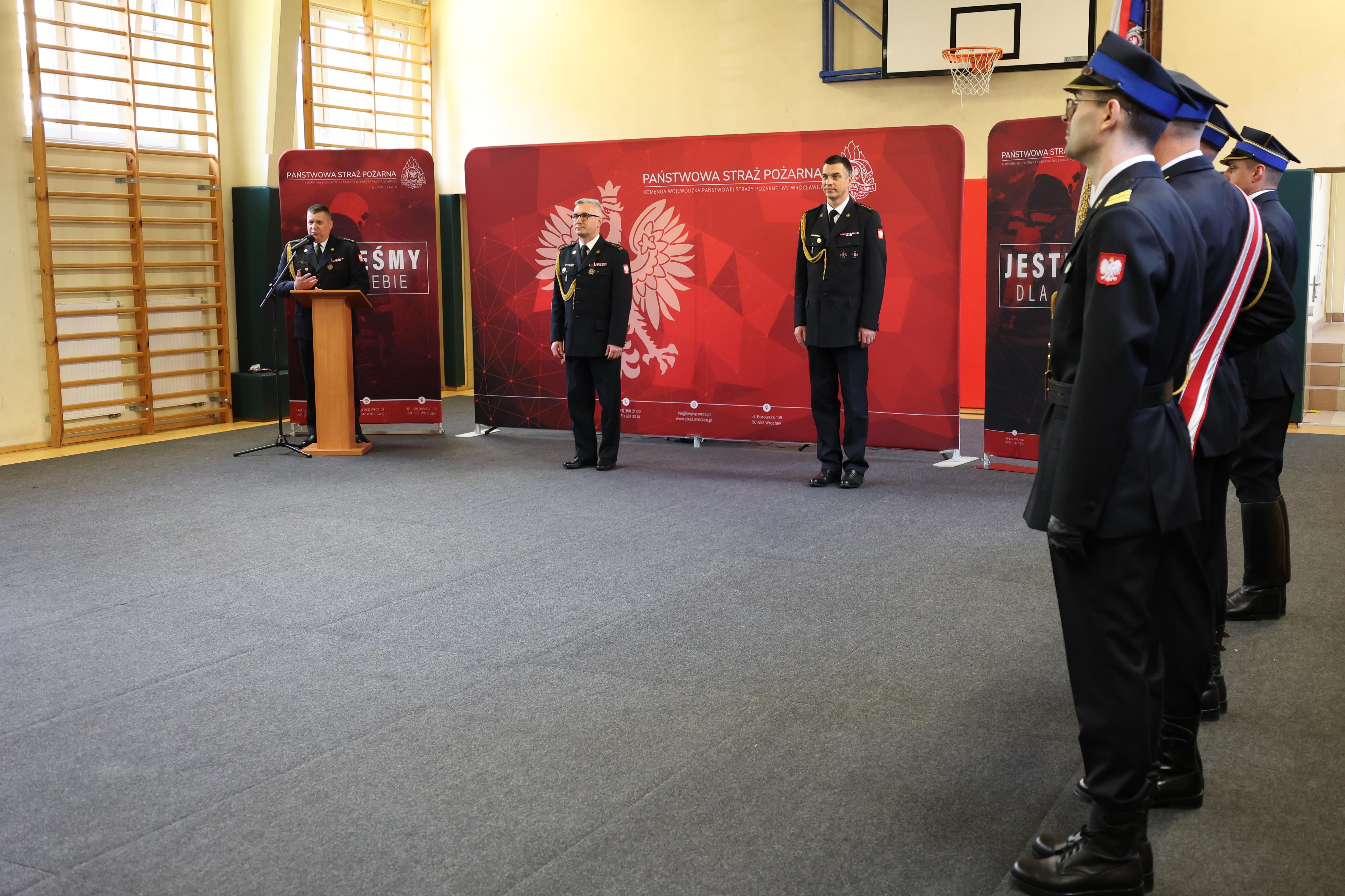 Po wręczeniu odznaczeń, awansów i wyróżnień, głos zabrał st. bryg. Marek Hajduk, Dolnośląski Komendant Wojewódzki PSP, który w swoim przemówieniu podkreślił wagę Dnia Strażaka jako okazji do podziękowania za służbę i pracę strażaków. "Dzień Strażaka to specjalna okoliczność, żeby podziękować Wam za służbę i pracę. Dziękuję Wam, za szczególne zaangażowanie, to przede wszystkim Wy tworzycie tę komendę" - powiedział st. bryg. Hajduk.