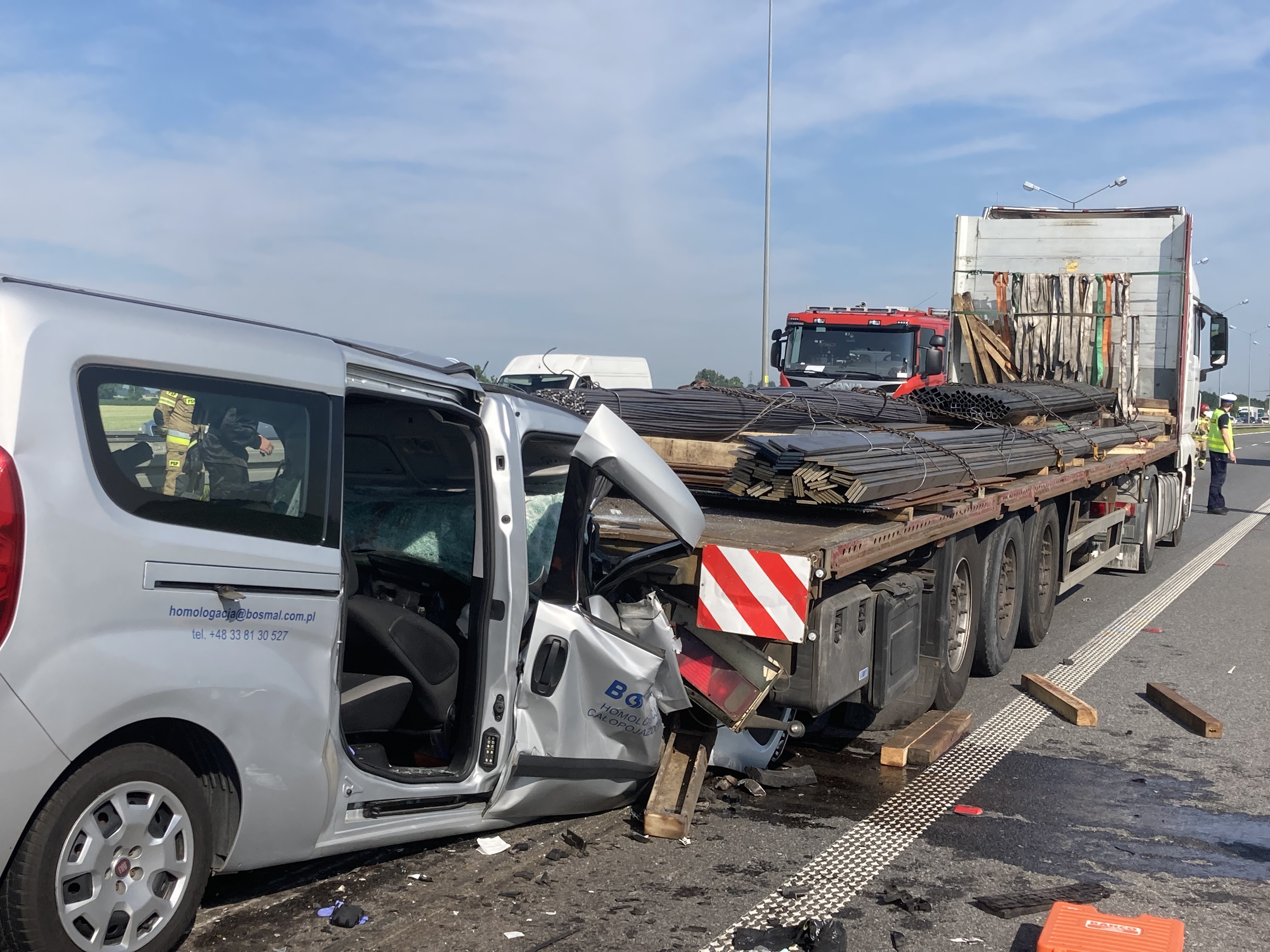 Kiedy wczoraj (5 lipca 2021 r.) wrocławscy strażacy przybyli na miejsce zdarzenia, do godziny 8 rano brakowało dwóch minut. Zastana sytuacja na autostradzie A4, na wysokości miejscowości Milejowice pow. wrocławski, skłaniała do jak najgorszych przypuszczeń. Przeprowadzone przez strażaków rozpoznanie wykazało jednak, że w tym dramatycznie wyglądającym wypadku z udziałem samochodu osobowego i naczepy przewożącej elementy stalowe, na szczęście nie doszło do najgorszego, czyli ofiar śmiertelnych.