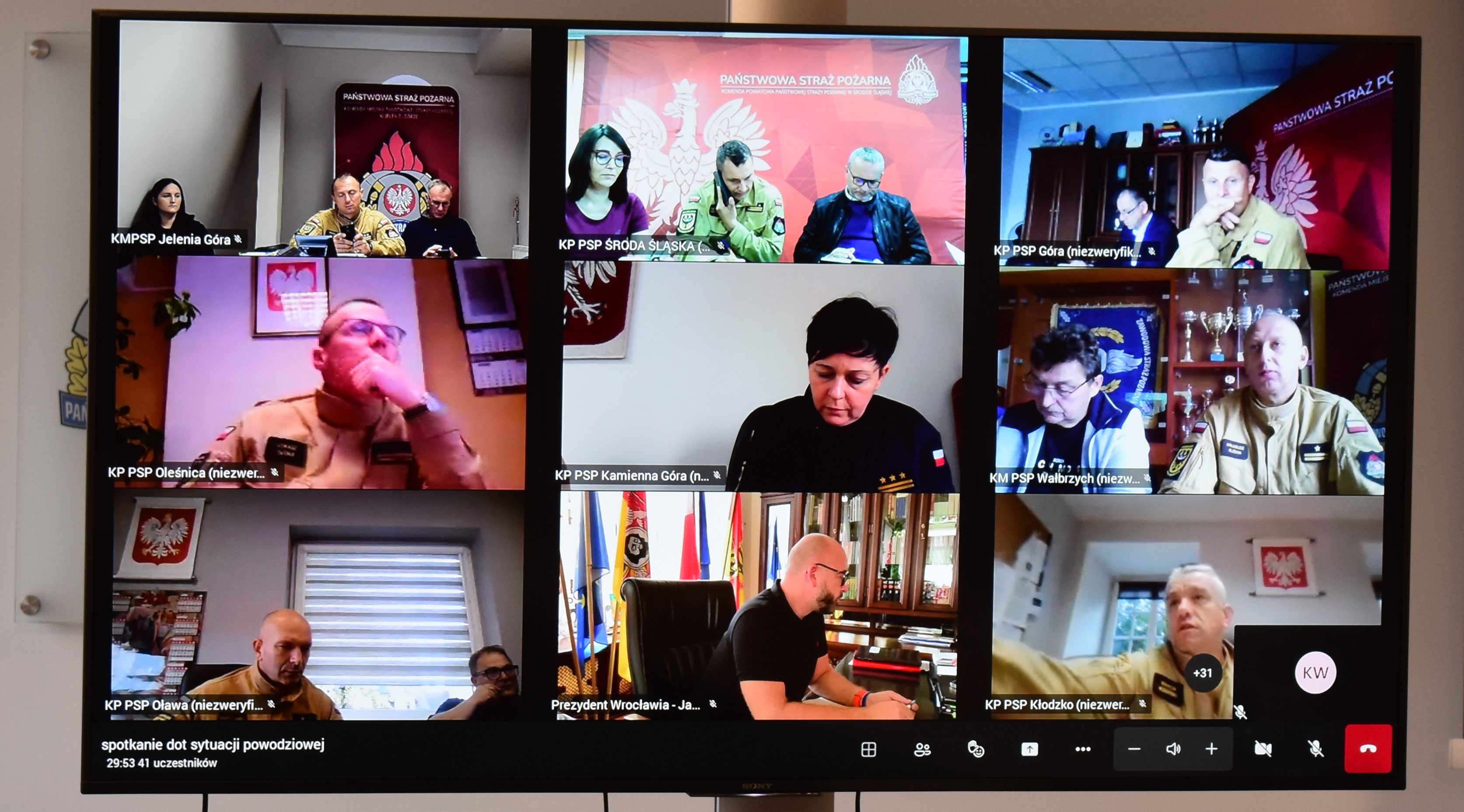 16 września 2024 r. w Komendzie Wojewódzkiej Państwowej Straży Pożarnej we Wrocławiu odbyła się wideokonferencja Wojewódzkiego Zespołu Zarządzania Kryzysowego. W spotkaniu bierze udział kierownictwo Komendy Wojewódzkiej PSP pod przewodnictwem st. bryg. Marka Hajduka, Dolnośląskiego Komendanta Wojewódzkiego PSP.