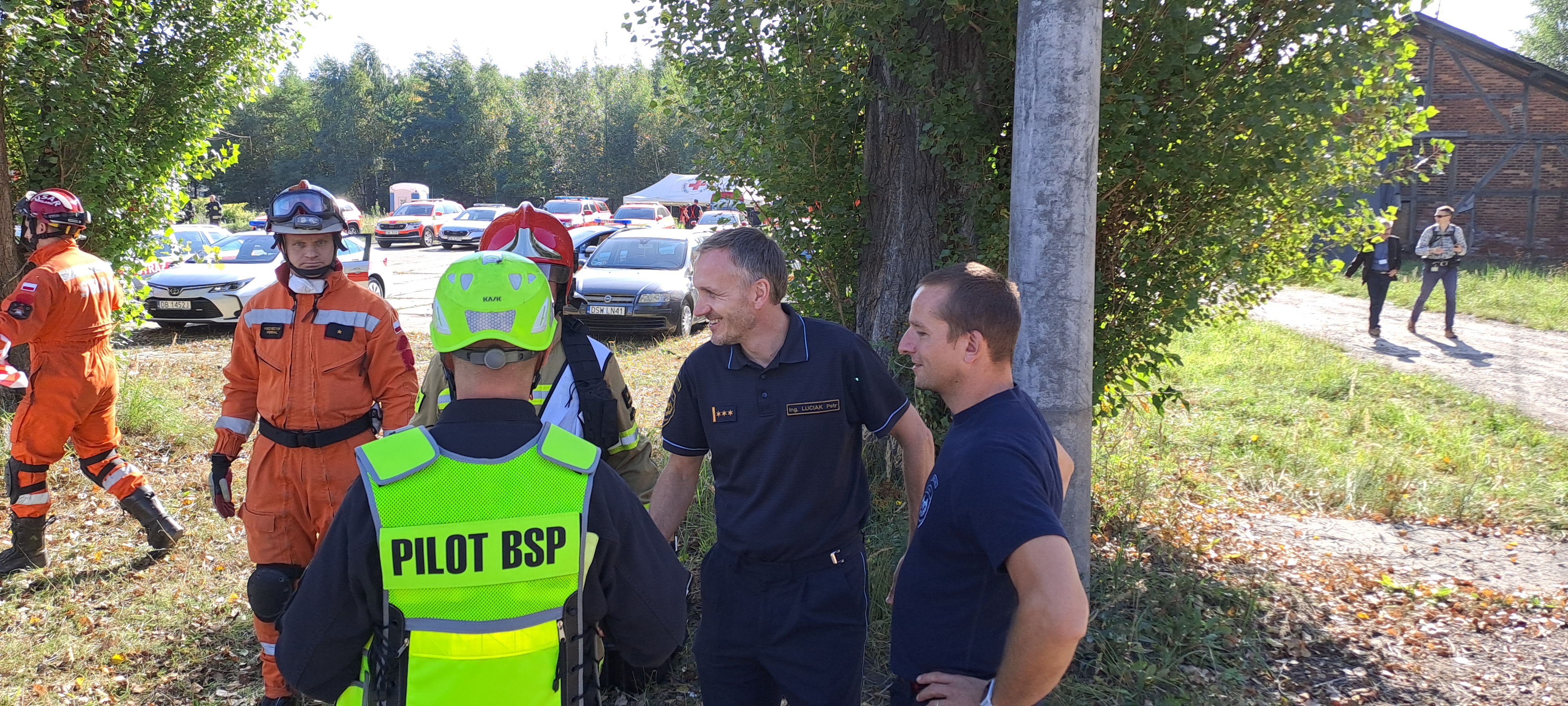 dla uchodźców, gaszenie pożaru lasu w terenie trudnodostępnym, ewakuację osób poszkodowanych z kolei linowych oraz doskonalenie technik w zakresie działań poszukiwawczo-ratowniczych z wykorzystaniem dronów. W ćwiczeniach brały udział 64 pojazdy PSP, 240 osób oraz 9 psów ratowniczych. Do prawidłowego przebiegu ćwiczeń, w tym organizacją pozoracji, wyznaczono jako kierownika ćwiczeń – st. bryg. Pawła Kalińskiego (Zastępcę Komendanta Miejskiego PSP w Wałbrzychu). Na kierującego działaniem ratowniczym na poziomie strategicznym wyznaczono – st. bryg. Marka Hajduka (Naczelnika Ośrodka Szkolenia Komendy Wojewódzkiej PSP we Wrocławiu). Do dyspozycji sztabu znajdowały się m. in. następujące siły i środki: lokalne siły i środki jednostek ochrony przeciwpożarowej, Specjalistyczne Grupy Poszukiwawczo-Ratownicze „Wałbrzych 1”, „Wrocław 5”, „Lubin”; Specjalistyczna Grupa Ratownictwa Chemiczno-Ekologicznego „Wałbrzych 2”; Ochotnicza Straż Pożarna Grupa Poszukiwawczo-Ratownicza „Wałbrzych”, Ochotnicza Straż Pożarna Jednostka Ratownictwa Specjalistycznego „Wrocław”, Ochotnicza Straż Pożarna „Siechnice”; Kompania Gaśnicza WOO KSRG „Jelenia Góra”, Kompania Logistyczna WOO KSRG „Dolny Śląsk”. Ponadto, w przedmiotowych ćwiczeniach brali udział przedstawiciele podmiotów zewnętrznych, takich jak: Dolnośląski Urząd Wojewódzki WCZK, Górskie Ochotnicze Pogotowie Ratunkowe - Grupa Sudecka, Policja, Państwowe Ratownictwo Medyczne, Grupa Ratownictwa Medycznego Polskiego Czerwonego Krzyża, Jednostka Ratownictwa Górniczo-Hutniczego KGHM, Nadleśnictwo Świdnica, Nadleśnictwo Wałbrzych. W ramach wzajemnej współpracy transgranicznej w ćwiczeniach aktywnie uczestniczyli również strażacy z Czech, a dokładniej z HZS Liberec i HZS Hradec Kralove.