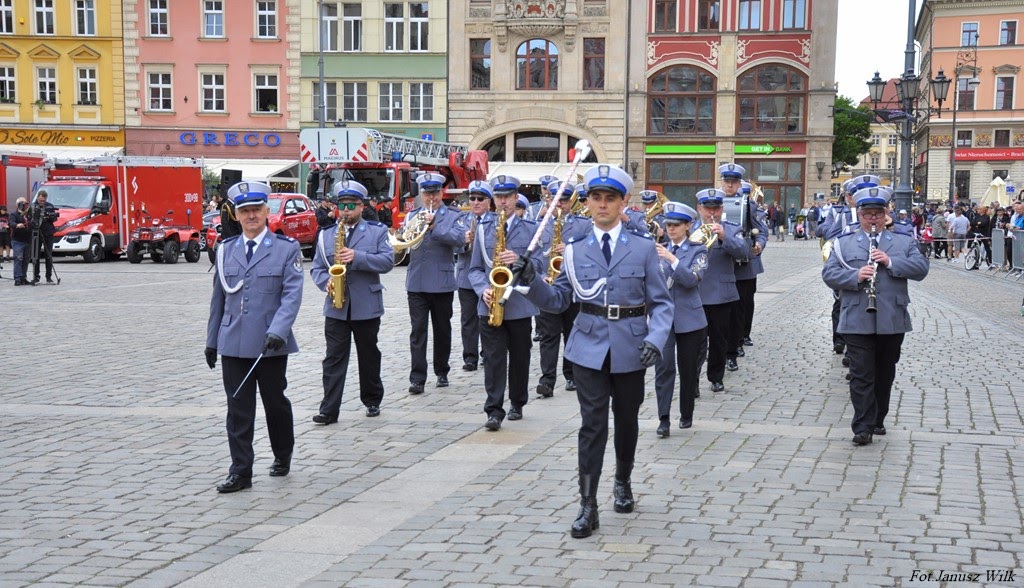 Uroczysty Apel zakończyła defilada pododdziałów, a oprawę muzyczną całej uroczystości zapewniła Orkiestra Komendy Wojewódzkiej Policji we Wrocławiu, której kapelmistrzem jest podinspektor Adam Wittiw.