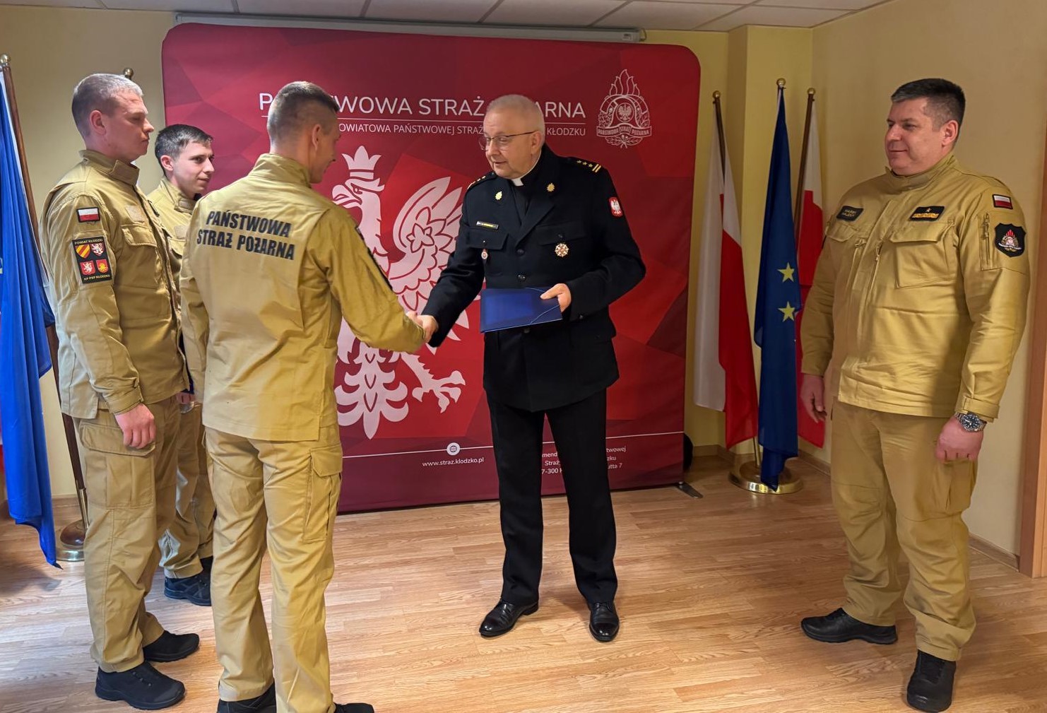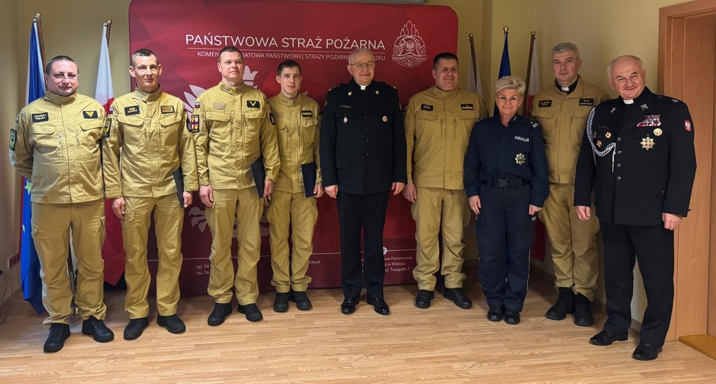 9 grudnia 2024 roku w Komendzie Powiatowej Państwowej Straży Pożarnej w Kłodzku odbyło się spotkanie ks. st. bryg. dr. Jana Krynickiego, kapelana krajowego strażaków oraz nadbryg. Marka Hajduka, Dolnośląskiego Komendanta Wojewódzkiego PSP, z funkcjonariuszami z regionu.