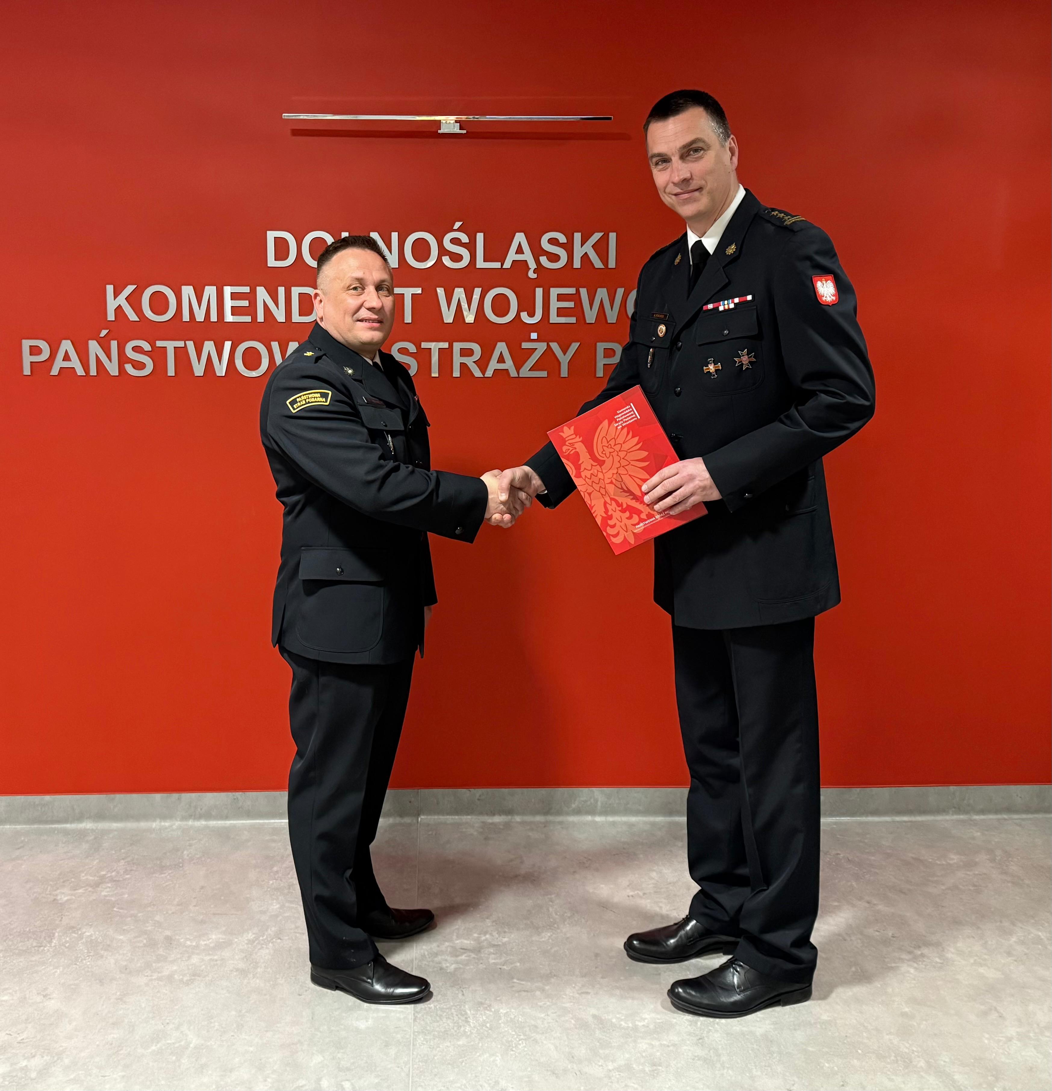 Decyzję w imieniu Dolnośląskiego Komendanta Wojewódzkiego PSP wręczył st. bryg. Andrzej Fischer, Zastępca Komendanta Wojewódzkiego PSP we Wrocławiu.